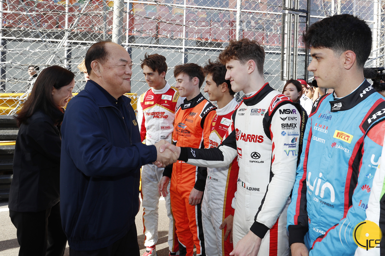 行政長官賀一誠與澳門格蘭披治三級方程式大賽參賽者握手