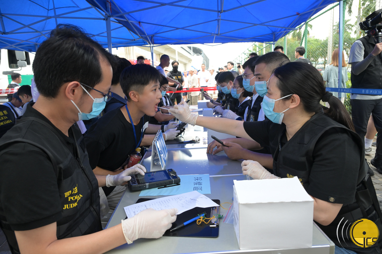2024年大型聯合反恐演練“盤龍” - 司法警察局人員對完成洗消人士進行排查。