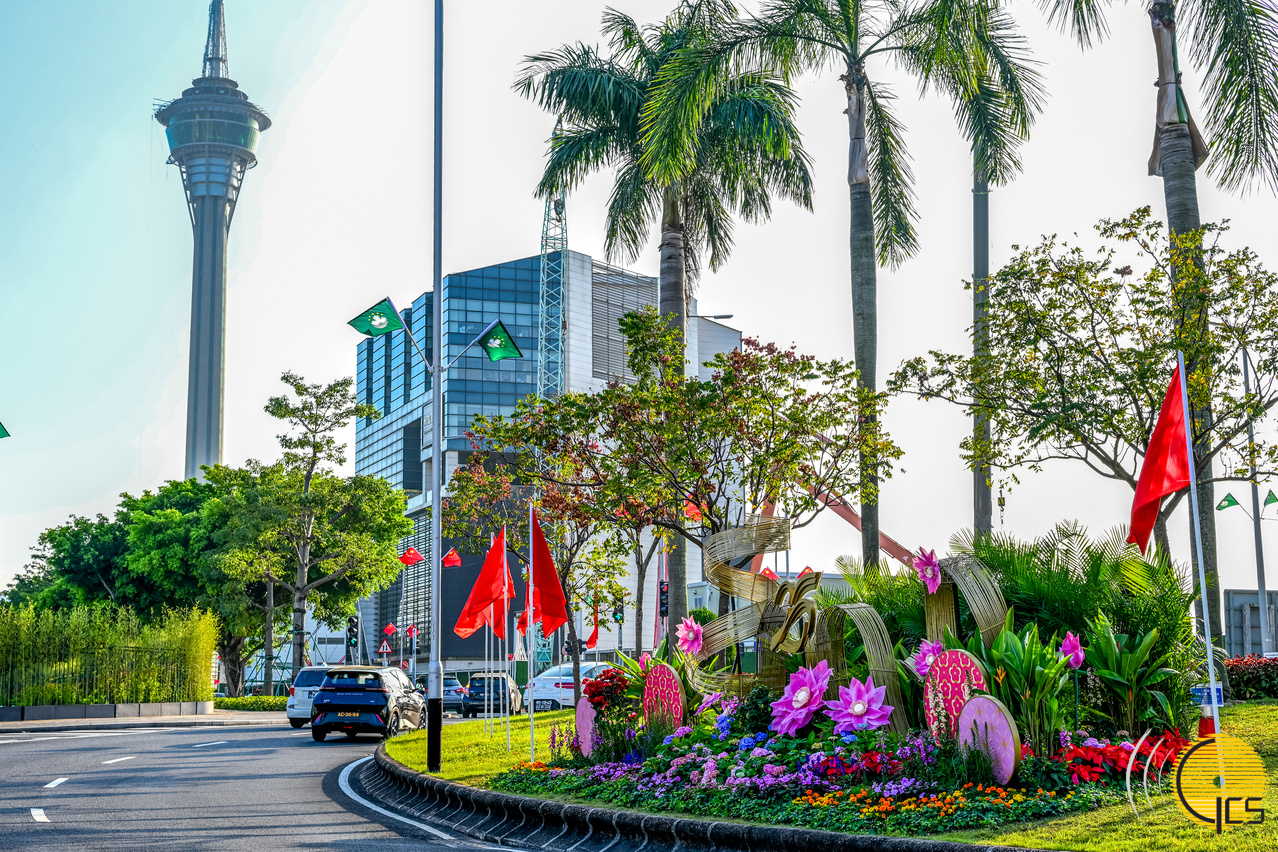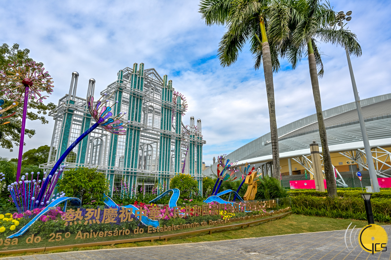 為熱烈慶祝澳門特別行政區成立25周年,全澳多處佈置了節慶花壇和燈飾,以絢麗花海和繽紛色彩營造隆重、喜慶、歡樂的節日氣氛。