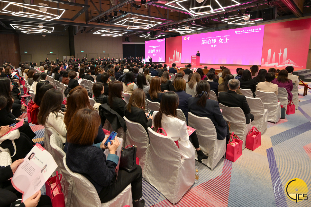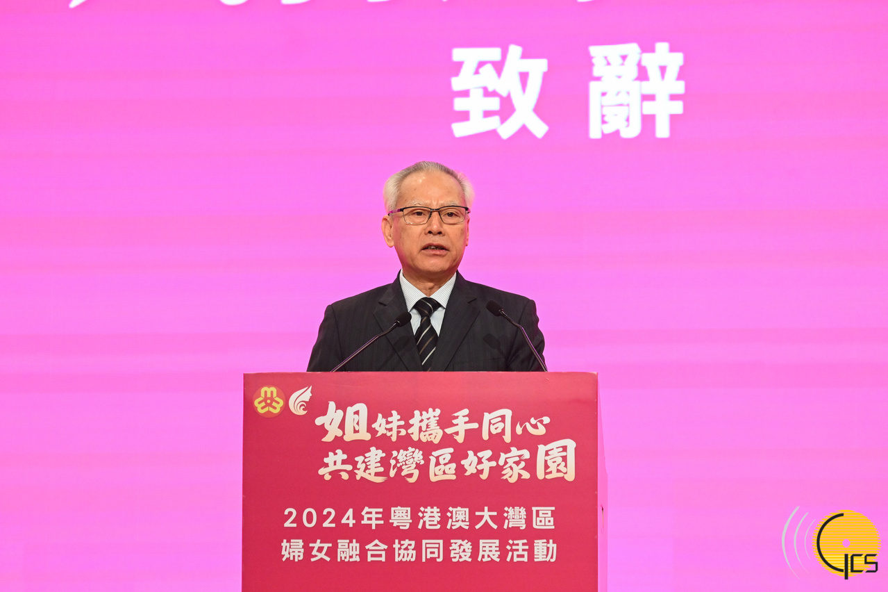 行政長官岑浩輝在“姐妹攜手同心共建灣區好家園一一粤港澳大灣區婦女融合協同發展”活動上致辭。