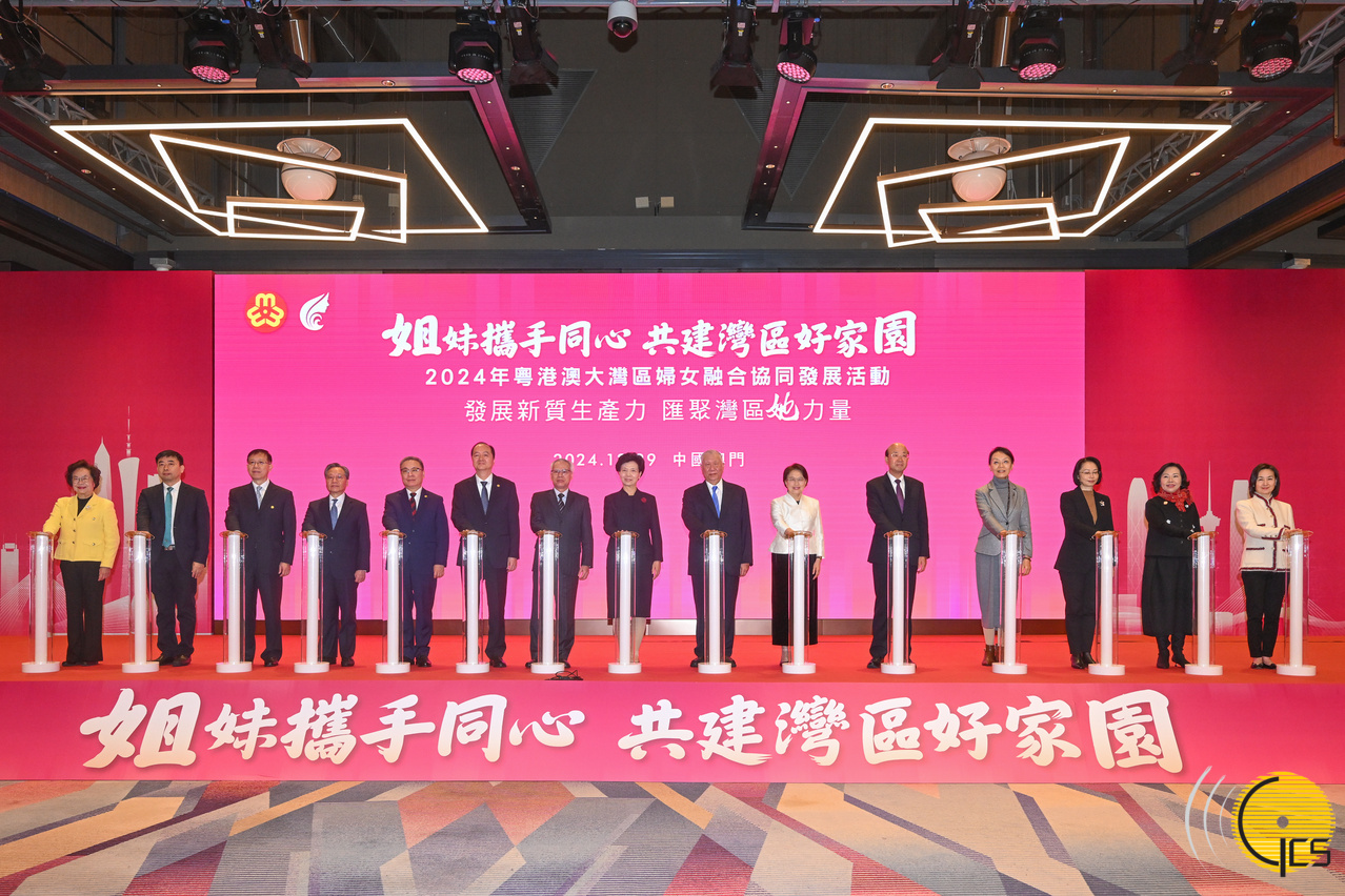 國務委員、國務院婦女兒童工作委員會主任、全國婦聯主席諶貽琴與行政長官岑浩輝,以及一眾主禮嘉賓共同主持“姐妹攜手同心共建灣區好家園一一粤港澳大灣區婦女融合協同發展”活動啟動儀式。