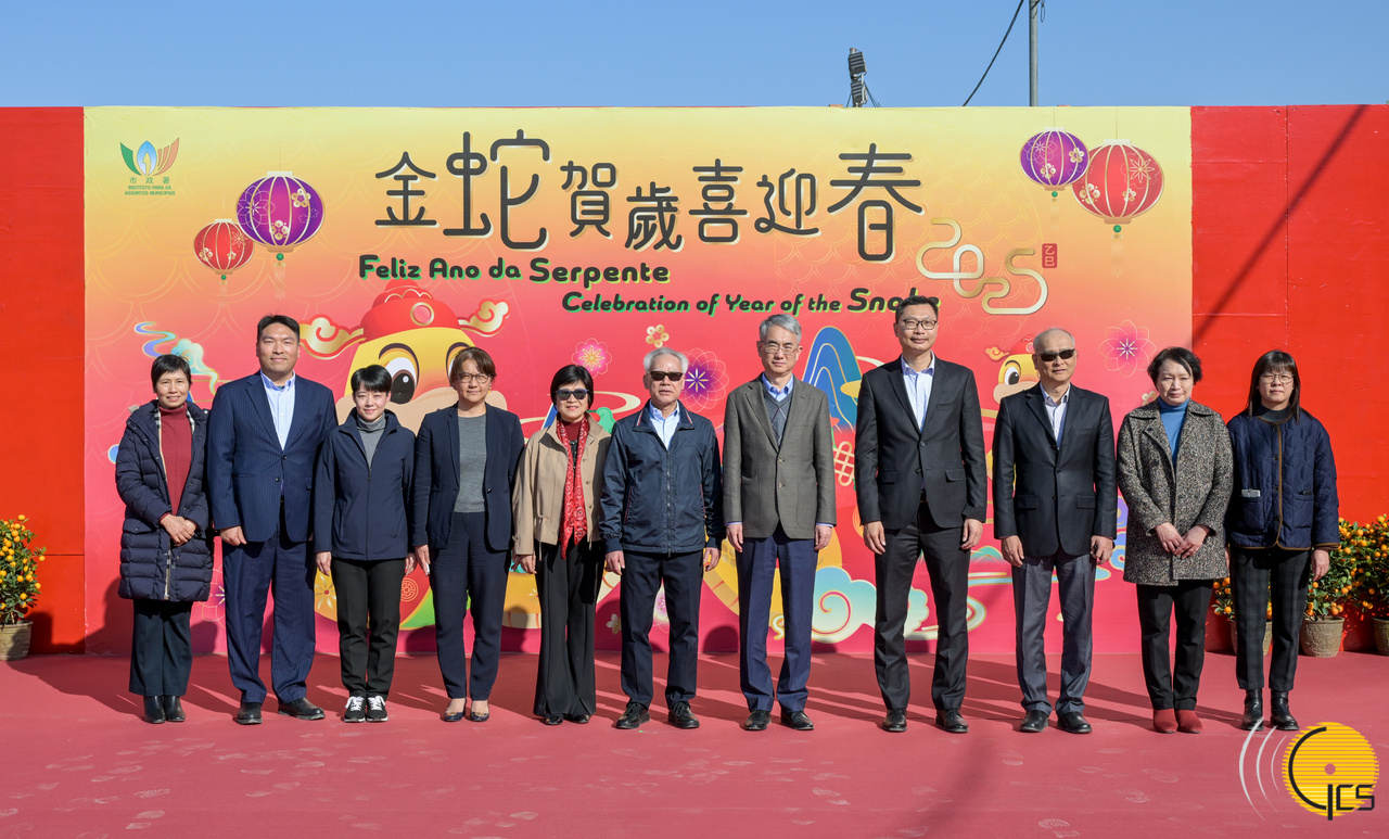 • 行政長官岑浩輝伉儷參觀氹仔爆竹燃放區後,與行政法務司司長張永春、市政署市政管理委員會主席周偉迎等合影。