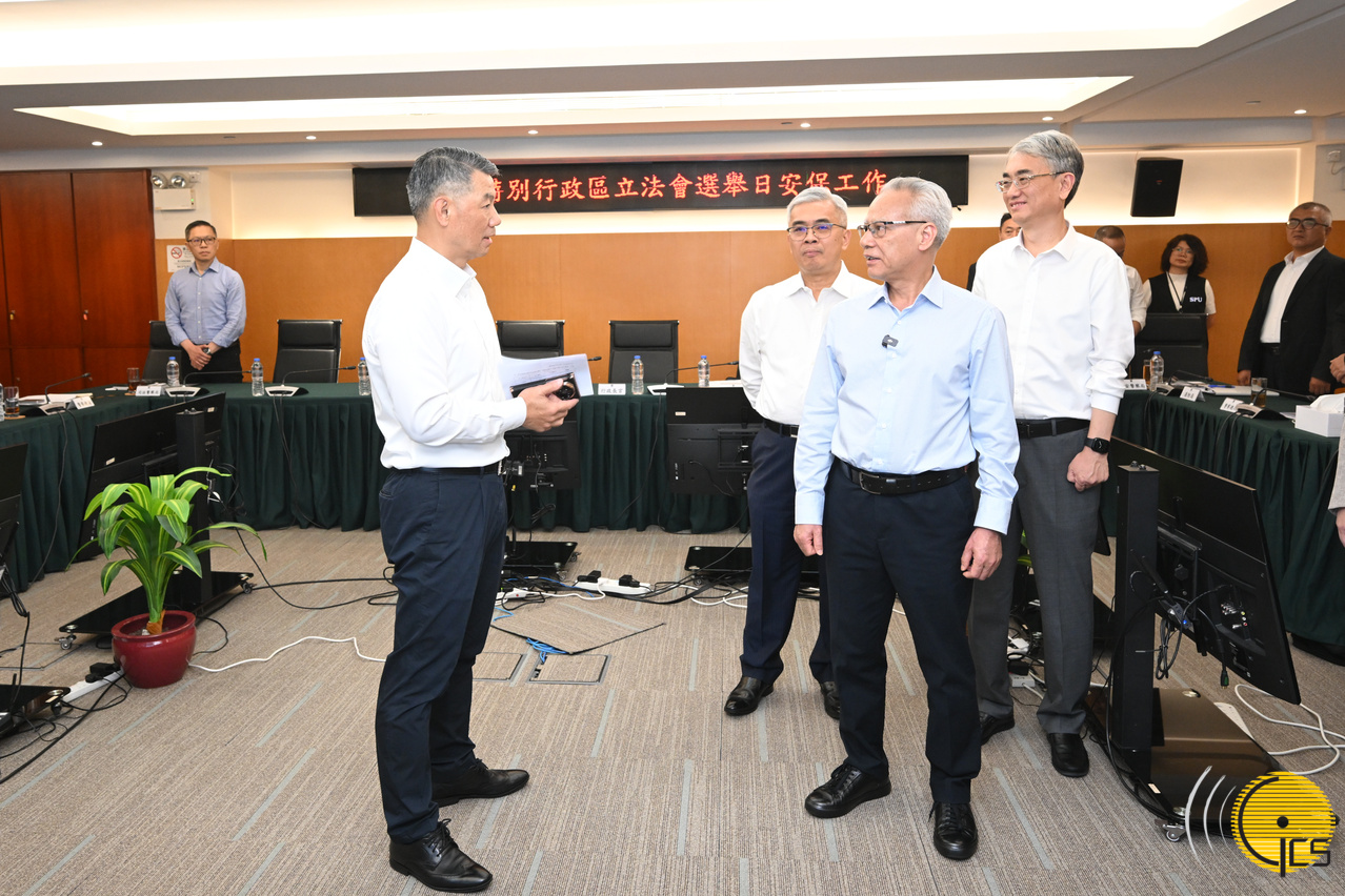 行政長官岑浩輝下午3時40分到警察總局,了解跨部門聯合行動指揮中心的運作情況。