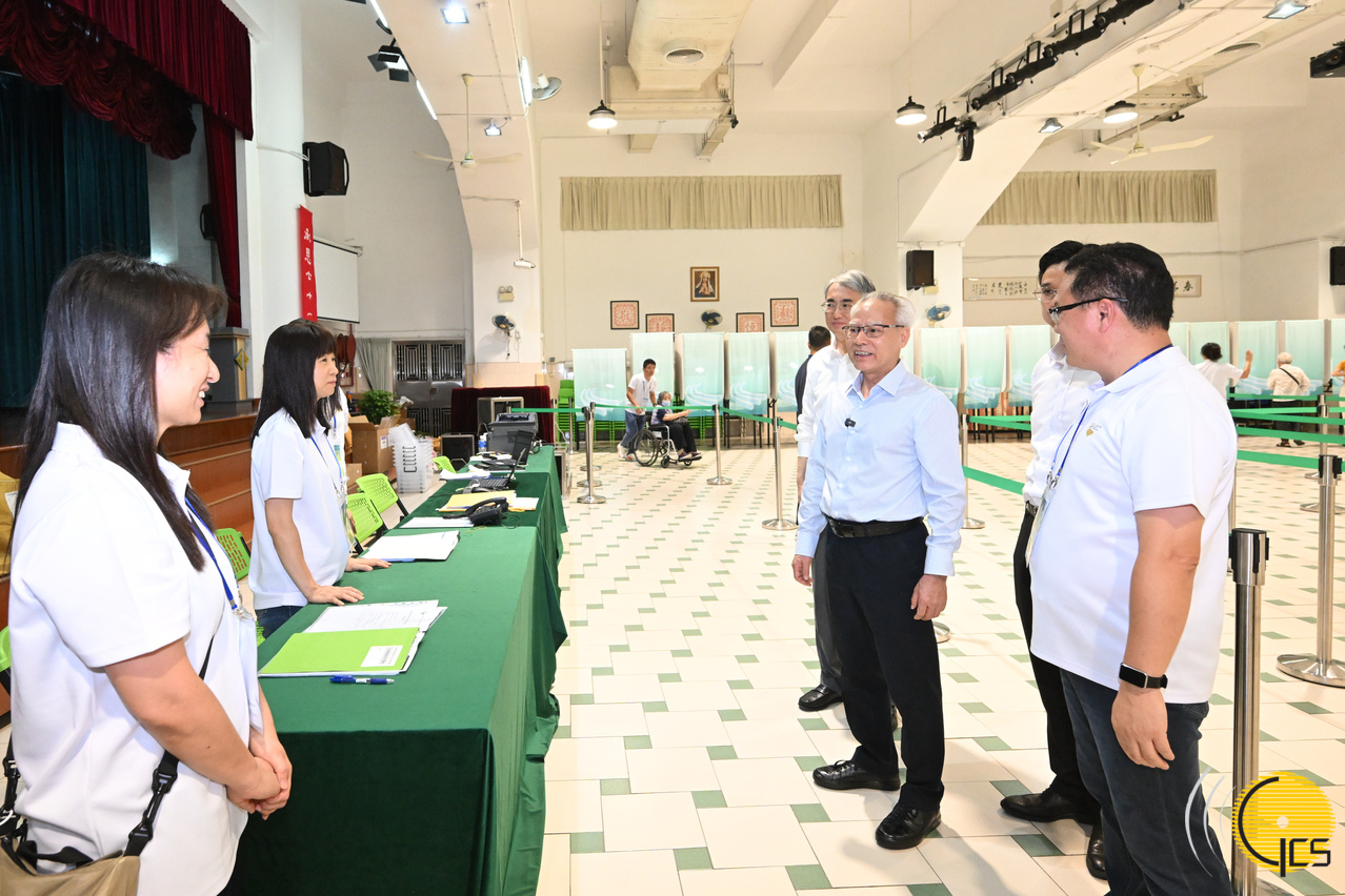 行政長官岑浩輝下午3時首先到鮑思高粵華小學投票站視察,為選務人員打氣。