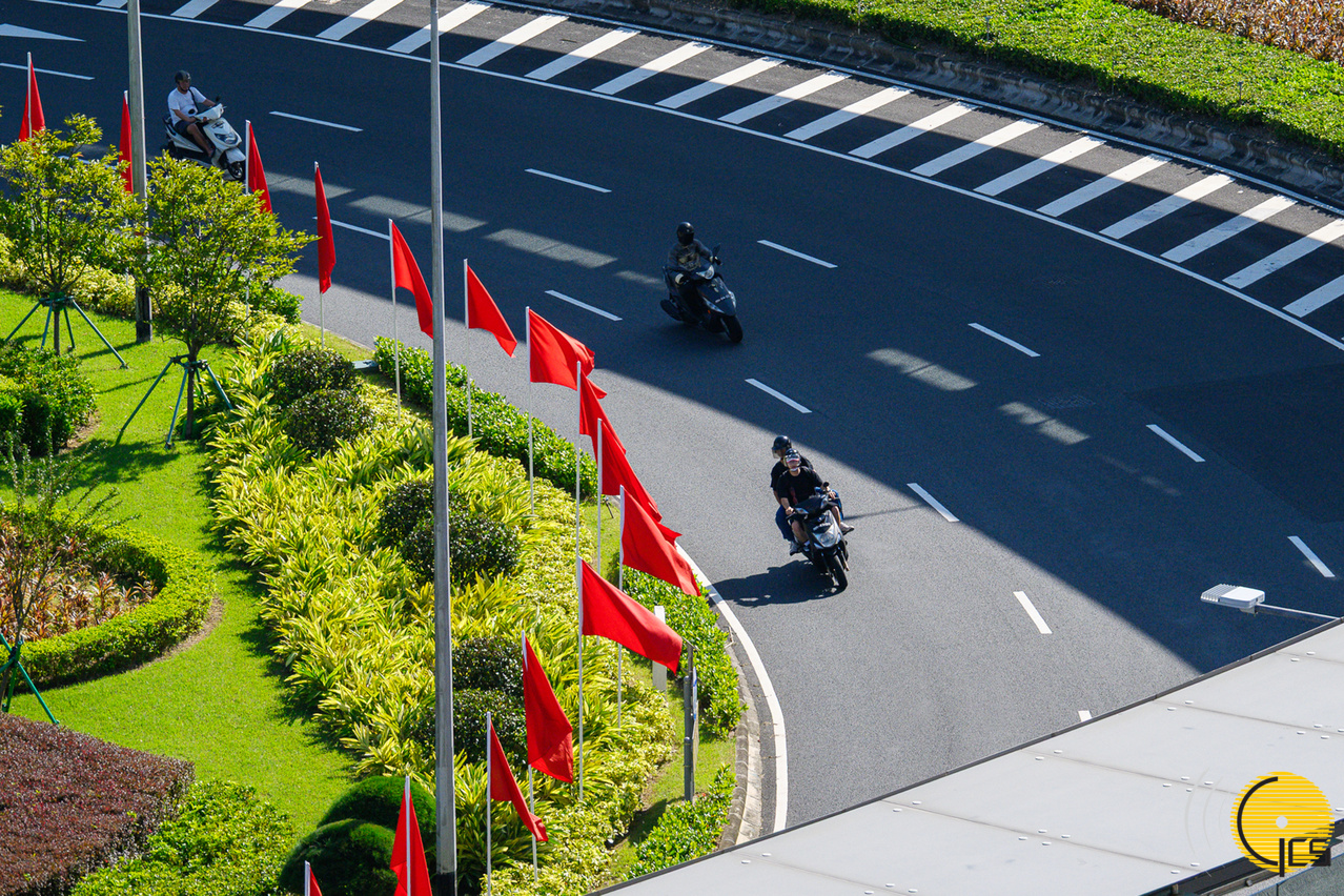 • 馬路披上“中國紅”,洋溢着喜慶熱烈的氛圍。