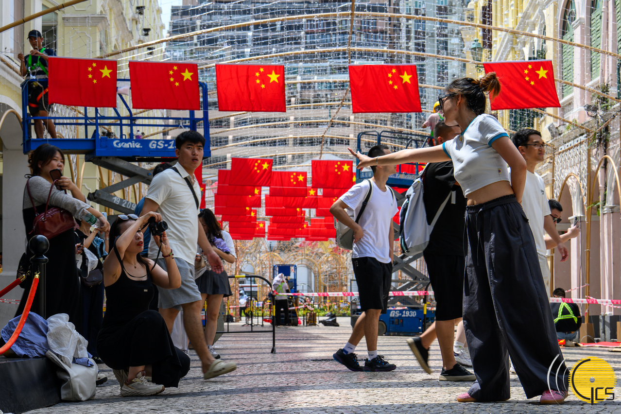 • 為慶祝中華人民共和國成立76周年,澳門多處都懸掛了國旗、紅旗,街上喜氣洋洋,充滿濃厚的節日氣氛。