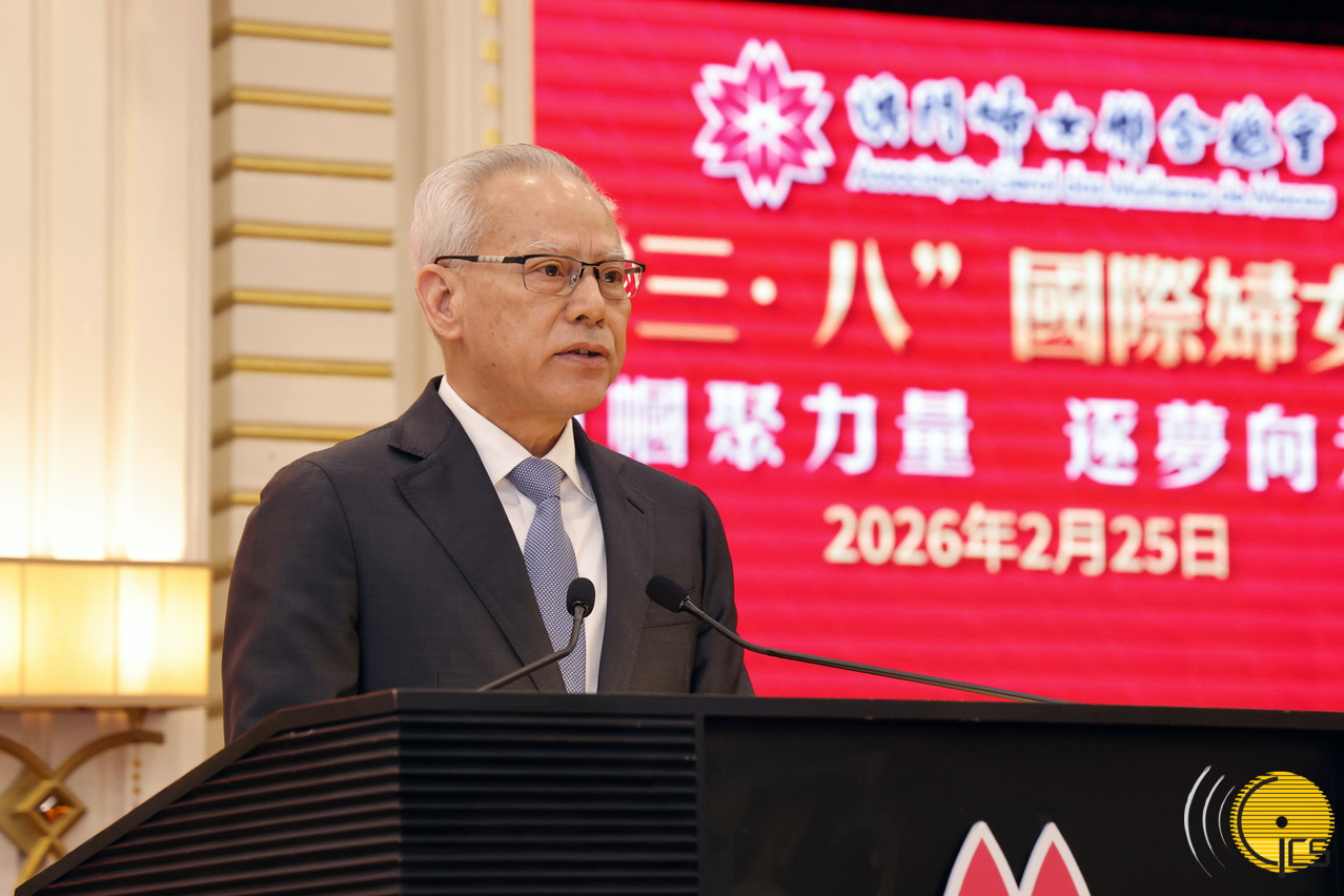 行政長官岑浩輝在澳門婦女聯合總會慶祝“三‧八”國際婦女節酒會上致辭。