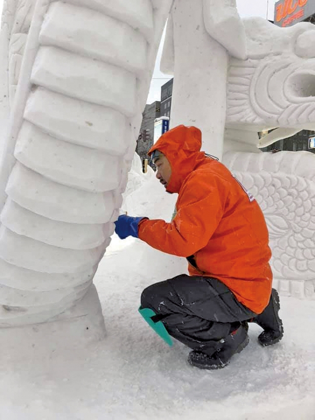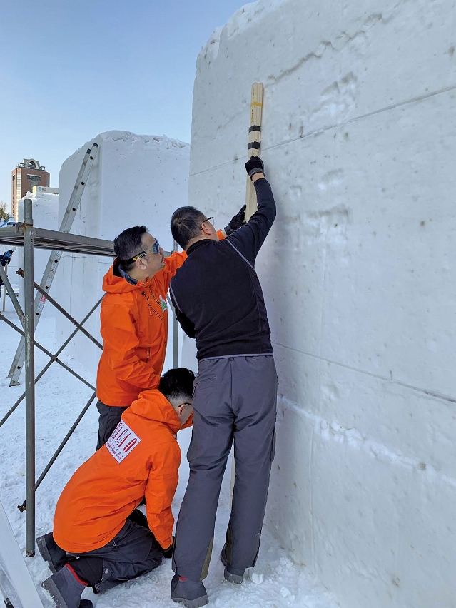 要創作出完美的雪雕作品,除了花心思設計,前期的準備工作亦不能馬虎。阮錦鴻指出,每次比賽前,都會根據賽事要求及天氣狀況,才決定作品的類型。當中最難預測的是天氣,亦是成敗關鍵之一。「如果在比賽途中下大雪,就會遮蓋作品的細節,必須重新雕刻。最麻煩的是太陽天,陽光的溫度會使雪雕的內部融化,即使外表看似完好無缺,但其實一碰便會塌下來」。