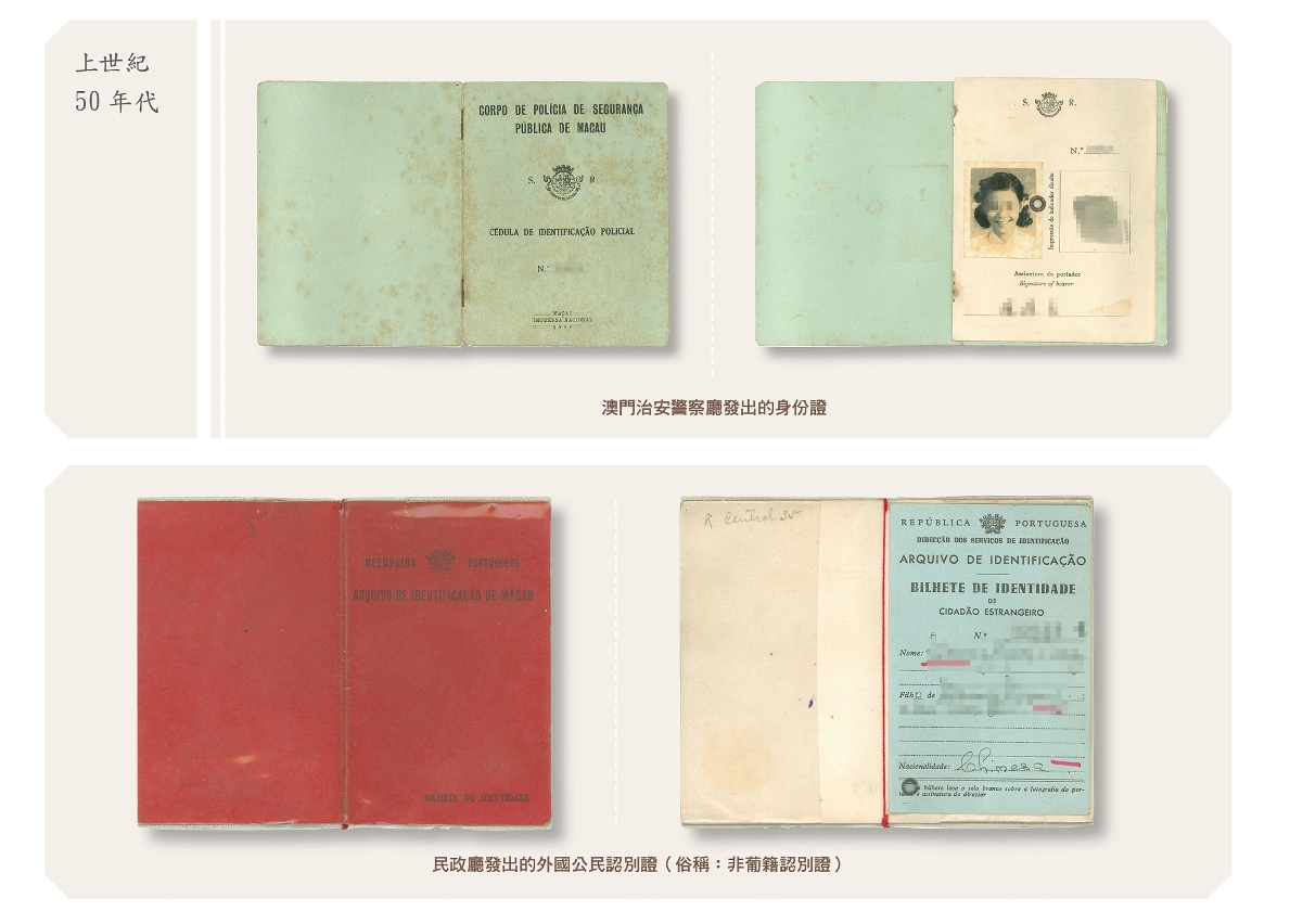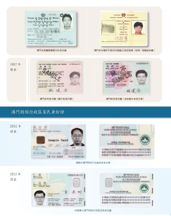當時的身份證明文件分為在澳門發出的葡萄牙證件(包括葡萄牙國民認別證及非葡籍認別證)及由澳門治安警察廳發出的身份證兩大類。1983年身份證明司(即回歸後的身份證明局)成立,於1992年頒佈了身份證發出制度,正式將身份證的發出權限統一到身份證明司,治安警察廳不再爲居民發出身份證。