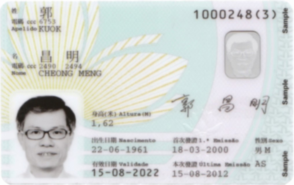澳門居民身份證上一直保持印有持證人簽名的設計元素,以便部門機構進行身份核對。