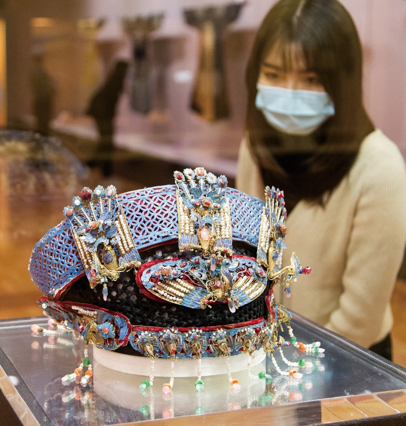 觀眾徜徉在豐富的服飾展中,不但能欣賞清代精湛的織繡工藝,還能參照清代典籍、圖像瞭解清代服飾制度、文化內涵,以及盛衰的歷史痕跡。