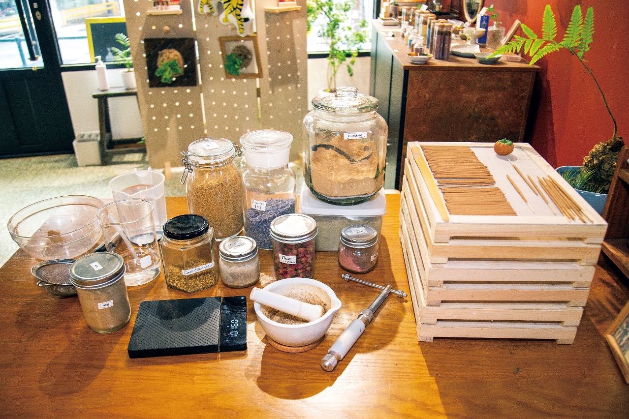 「我們的手作線香工藝雖與傳統神香相近,但也有一些特點。神香不是氣味合香,而是講求速度及產量,不怕日照,能夠大量生產,而且結構底部有竹籤,焚燒味道很重。線香的核心重點是合香,在製作過程中須按照比例調配香料,而且須保持溫度及濕度,否則會影響線香的氣味。」黃競時說。