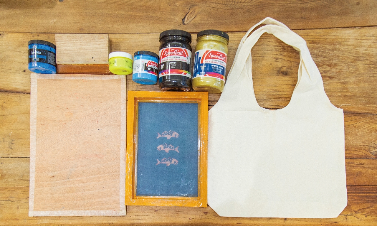 鄭君浩介紹,絲網印刷的主要原理,是通過刮板擠壓,讓油墨通過圖案部份的網版,轉移到承印物上。印刷前,首先要製作圖紋網版。網版的製作方式與沖洗照片同理,在設計好的網版上塗抹感光劑,再放在日照或強烈的紫外線燈下進行曬版,接着是選用合適的油墨進行印刷。絲網印刷可使用多種類型的油墨,包括油性、水性、粉體等,唯一要注意的,是須因應媒材選擇相對應的油墨。之後在絲網印版一端倒入適量油墨,再把刮板放在油墨位置上。」他特別提到:「印刷時刮板要呈45度角,在油墨位置往絲網版另一端輕輕一刮,讓油墨覆蓋整個網版圖案,便能清晰把圖案印在承印物上。最後,將網版輕輕抬起,避免網版殘餘油墨黏附在承印物上。」