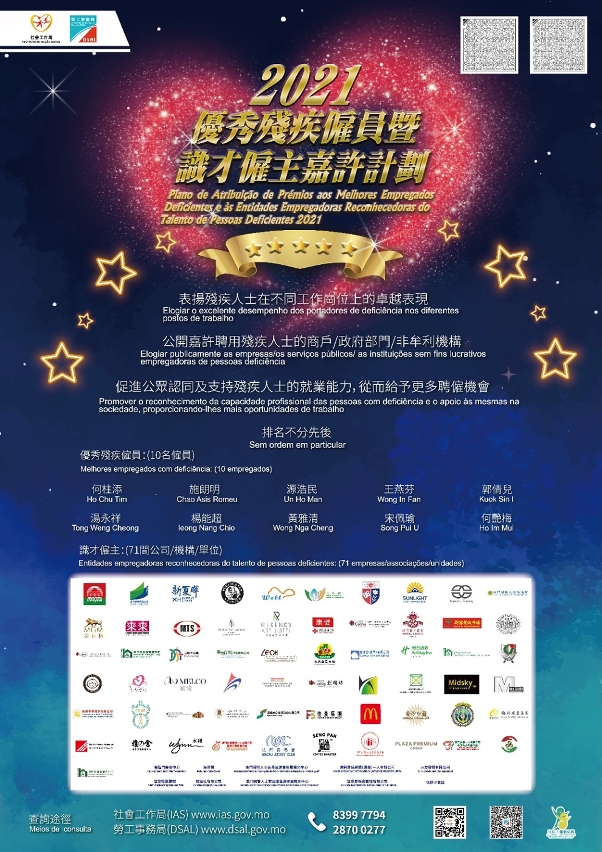 澳門特區政府一直關注智障人士的服務需要,尤其是針對智障人士投身社會,公開就業的需要,提供了多方面支援。