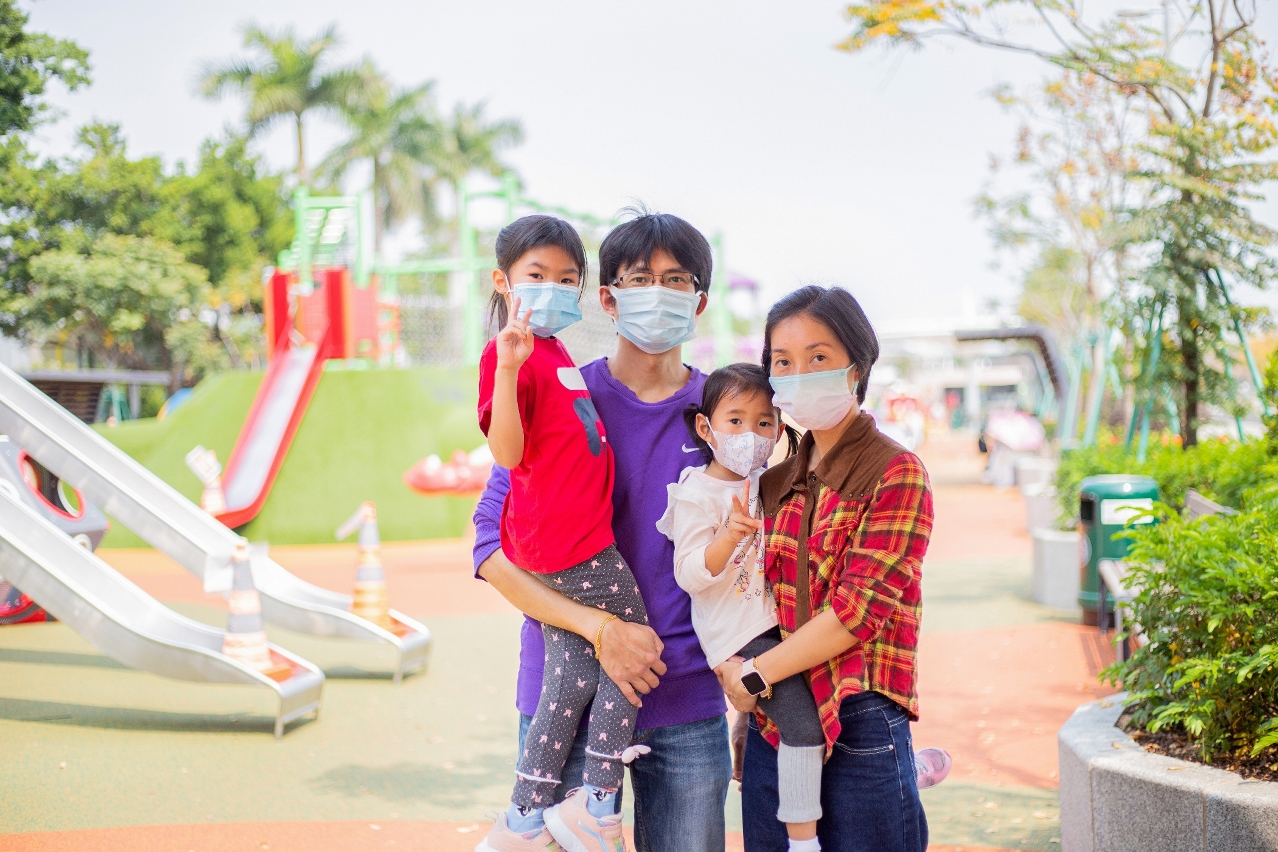 許太說,兩個女兒分別為3歲半及6歲半,年齡有一定差距,對遊樂設施有不同的需求,觀音像海濱休憩區內的親子共融遊具,可供她們一起玩樂。「這裡的新型搖搖板和韆鞦能鍛煉體能及平衡感,最重要是,可增加兩姊妹的互動性,培養感情。」