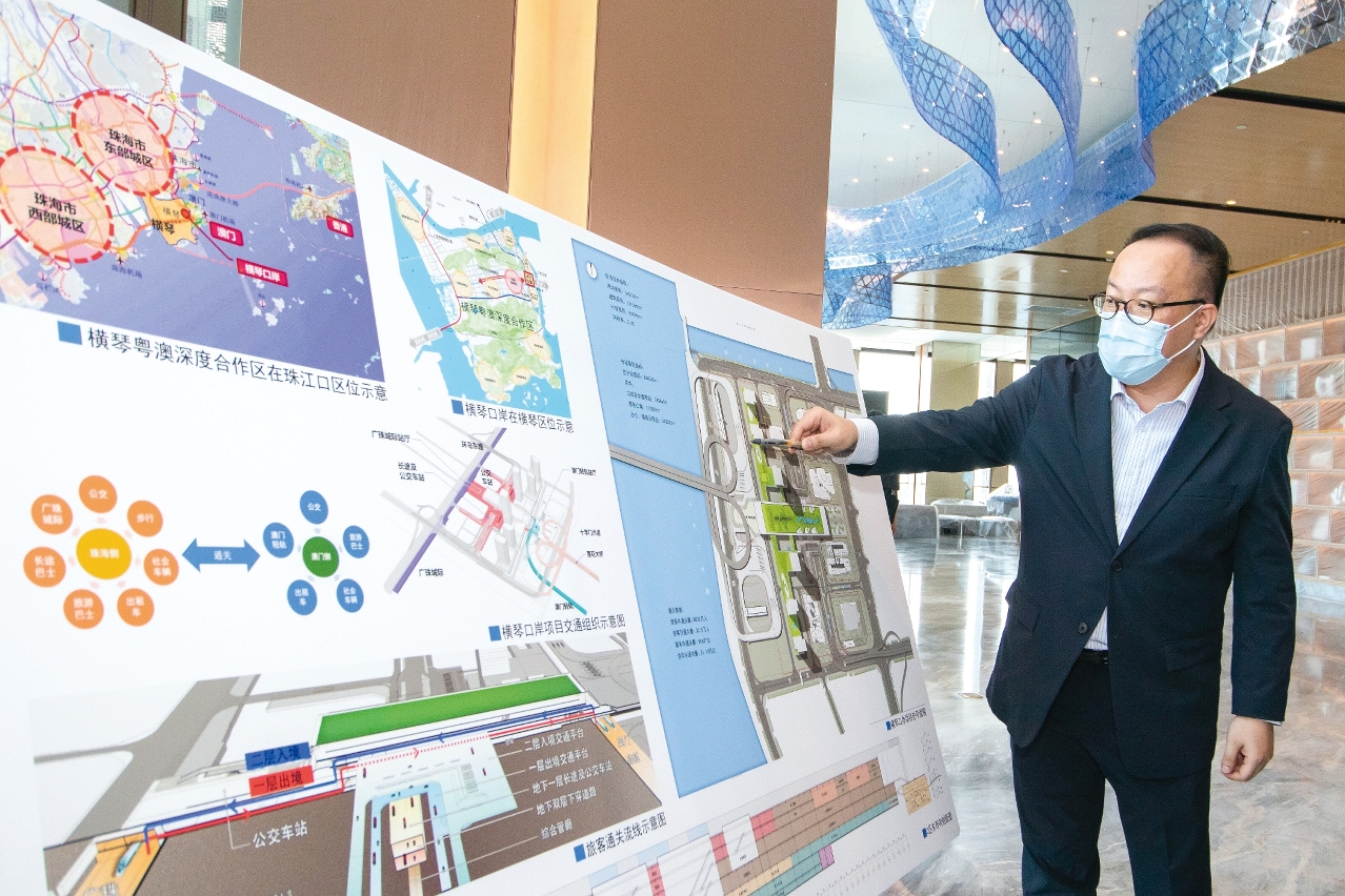 珠海大橫琴口岸實業有限公司副總經理彭波介紹,口岸用地東西兩側分別設置橫琴側交通樞紐和澳門側交通樞紐,整體實現軌道交通、機動車交通、行人交通的無縫轉換,達到通關與交通快捷高效的設計目標。