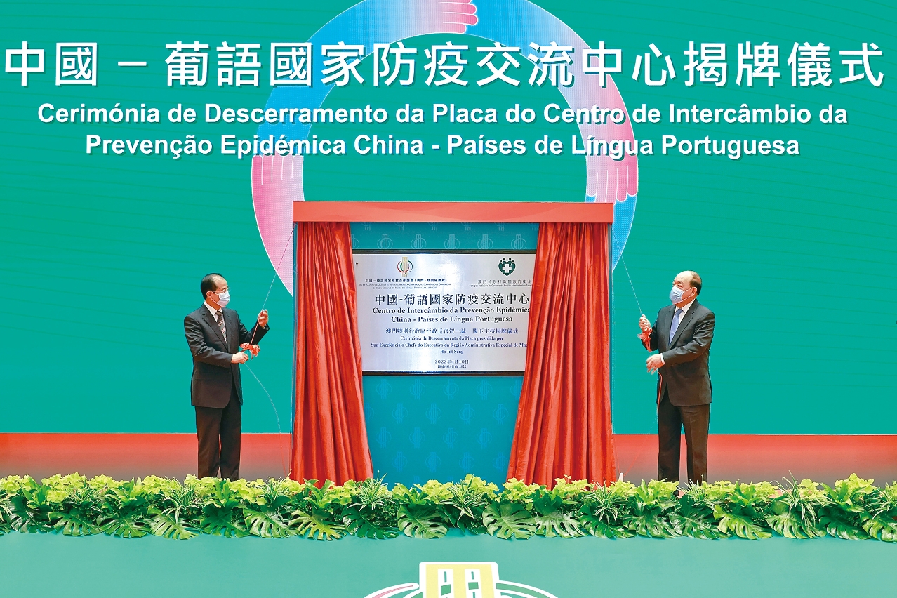 開幕式後,隨即舉行了中國—葡語國家防疫交流中心揭牌儀式。行政長官賀一誠和中央人民政府駐澳門特別行政區聯絡辦公室主任傅自應主禮揭牌儀式。中國—葡語國家防疫交流中心的成立,旨在充分發揮澳門密切聯繫葡語國家的優勢,以多種形式的交流和培訓為載體,加強中國與葡語國家在醫療衛生領域的合作,共同提升應對疫情的能力,攜手促進全球公共衛生事業發展,共建人類衛生健康共同體。
