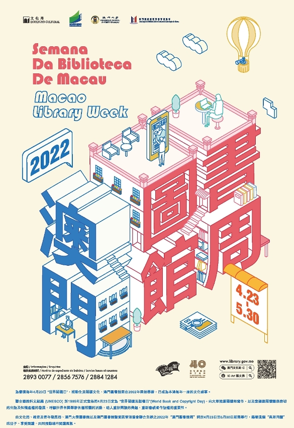 因應4月23日聯合國教科文組織訂定的「世界閱讀日」,文化局今年繼續聯合教育及青年發展局、澳門大學圖書館及澳門圖書館暨資訊管理協會主辦2022年「澳門圖書館周」活動,為不同年齡層的兒童及家長,舉辦有關親子關係經營與溝通技巧的講座。