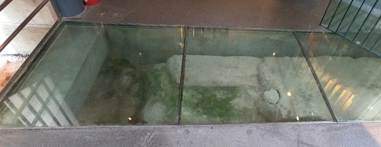 由於考古發現的牆基處於室外的路面一米多以下,對該牆基原址保存及展示,認為需要考慮地下水份對牆基可能產生的影響,因此,在新建築基礎方案修改的同時,在舊牆基外側約半米處建造了地下截水牆以防止地下水滲入牆基,另外也設置了去水處,以備遇水淹牆基時能排走積水(幸好,水淹的情況自建成後從來沒有發生)。至於對牆基的展示,用玻璃覆蓋是最常用的選擇,然而,由於澳門春夏季潮濕多雨,如果以玻璃將地下牆基遺址完全封閉,會增加遺址的濕度,除了會生出青苔植物,玻璃也經常被水氣遮掩(這情況在大三巴牌坊遺址的展示區常常發生), 因此,設計時在玻璃兩側留下了通風口,以自然通風減低牆基遺址的水份。