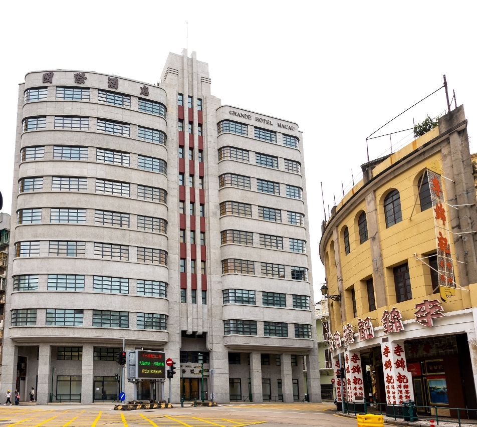 正如文首提及,1941年開幕的國際酒店,由澳門葡人工程師施若翰(João Canavarro Nolasco)設計,酒店名字請得葉恭綽(1881年—1968年,政治活動家、書畫家)題字,就是澳門其中一座非常獨特、典型的裝飾藝術建築物,落成時,國際酒店是葡萄牙海外管治地區最高的建築物。酒店大樓正面中央部份以竪直線條強調建築物的竪向與高度,加上頂部凸出的塔樓設計,彰顯該建築物當時在城市的地標性,而兩側客房部份則以橫向的流線型設計,在澳門的裝飾藝術建築中具有一定的獨特性。