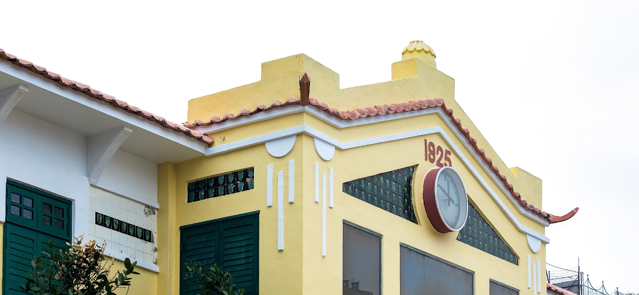 從展藝館凸出的帶簷托的寬大屋簷可見,這大樓的頂部有點類似19世紀末葡萄牙莊園大宅的設計,但從裝飾的處理上,除了可以見到「新藝術」的瓷磚,也能見到幾何化的「馬蹄形拱」。