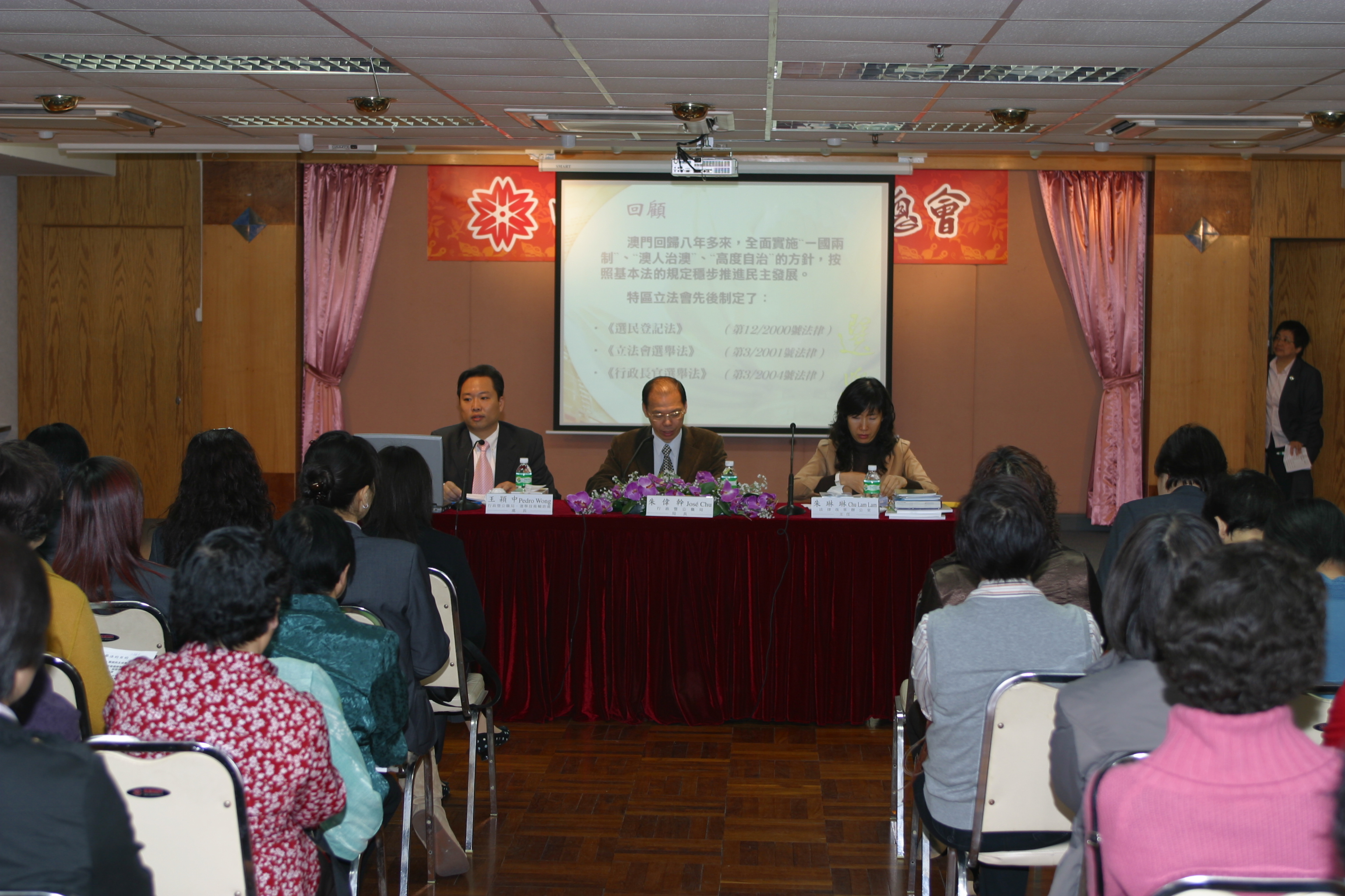 應婦女聯合總會的邀請,行政暨公職局和法律改革辦公室今(3月7 日星期五)日上午十時向該會百多名負責人、工作人員及會員講解修改《選民登記法》、《行政長官選舉法》和《立法會選舉法》諮詢文本的內容。會上行政暨公職局朱偉幹局長、法律改革辦公室朱琳琳主任和選舉技術輔助處王穎中代處長向與會者介紹文本內各項建議的具體方案,並回答與會者提出的問題。