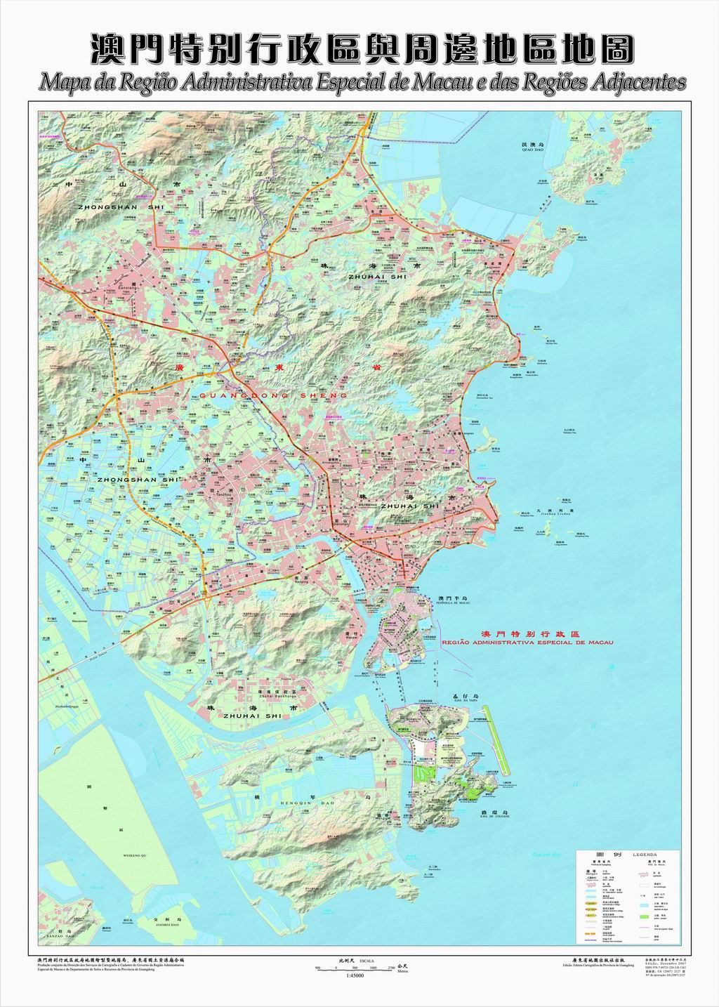 近年來,澳門及內地周邊地區的經濟正急速發展,兩地的經貿合作關係顯得更為緊密,為滿足社會大眾對地理信息用圖的需求,澳門特別行政區地圖繪製暨地籍局與廣東省國土資源廳再次攜手合作,秉持一貫的合作精神,採用專業精細的製圖技術,在兩地科研人員的多方努力下,於2007年12月完成新版的『澳門特別行政區與周邊地區地圖』。