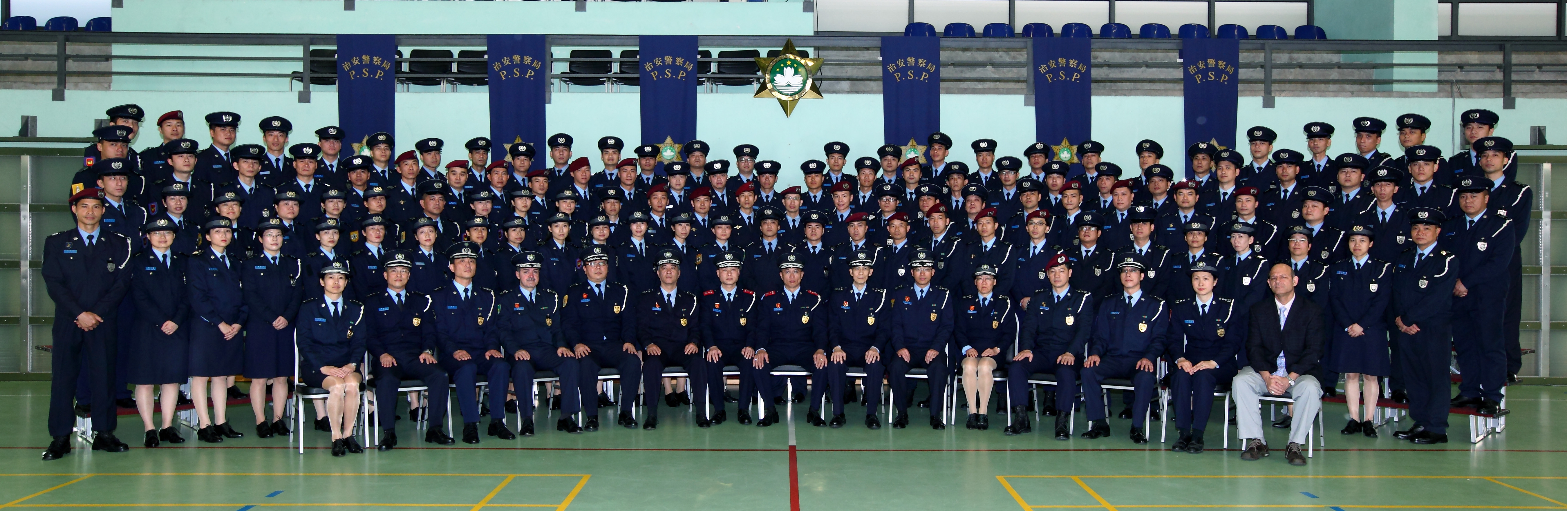 今天(十七日)上午11時00分,在治安警察局特警隊大樓室內體育館舉行了晉升為首席警員的晉升儀式。儀式由治安警察局代局長李小平副警務總監、副局長馬耀權副警務總監及代副局長李文儉警務總長主持。出席儀式的還有局內各部門的廳長及負責人,為同僚作出祝賀。