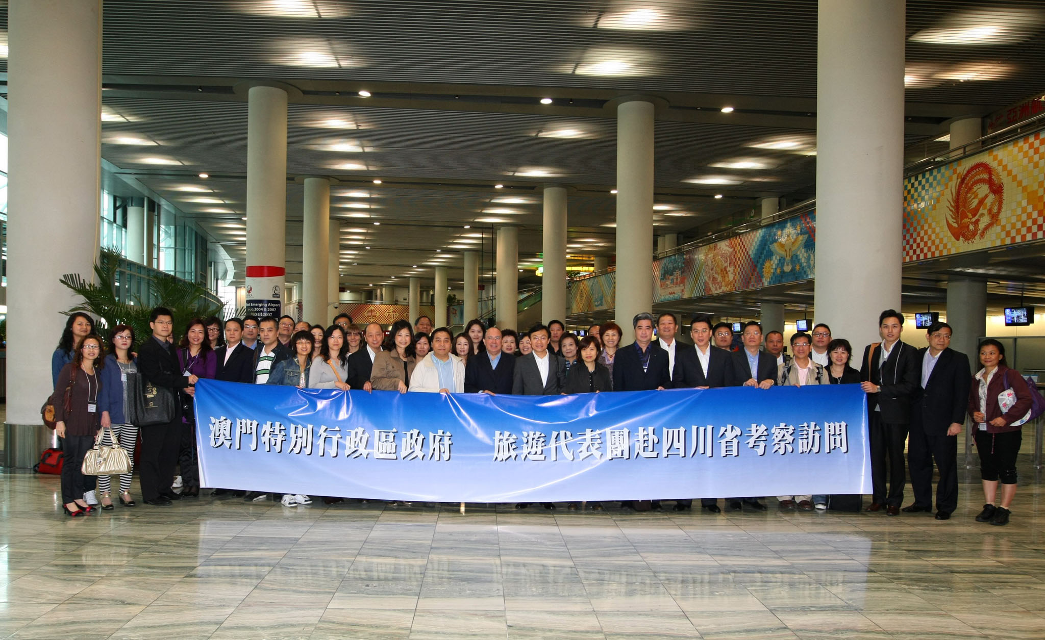 由澳門特別行政區政府旅遊局、旅遊發展輔助委員會及旅遊業界組成的旅遊代表團於昨日(二十六日)赴四川省進行為期四日的考察訪問,實地了解「五一二」大地震一年後,當地旅遊業的復蘇情況,,期望透過川澳兩地業界的共同合作,支持四川省旅遊業的發展。