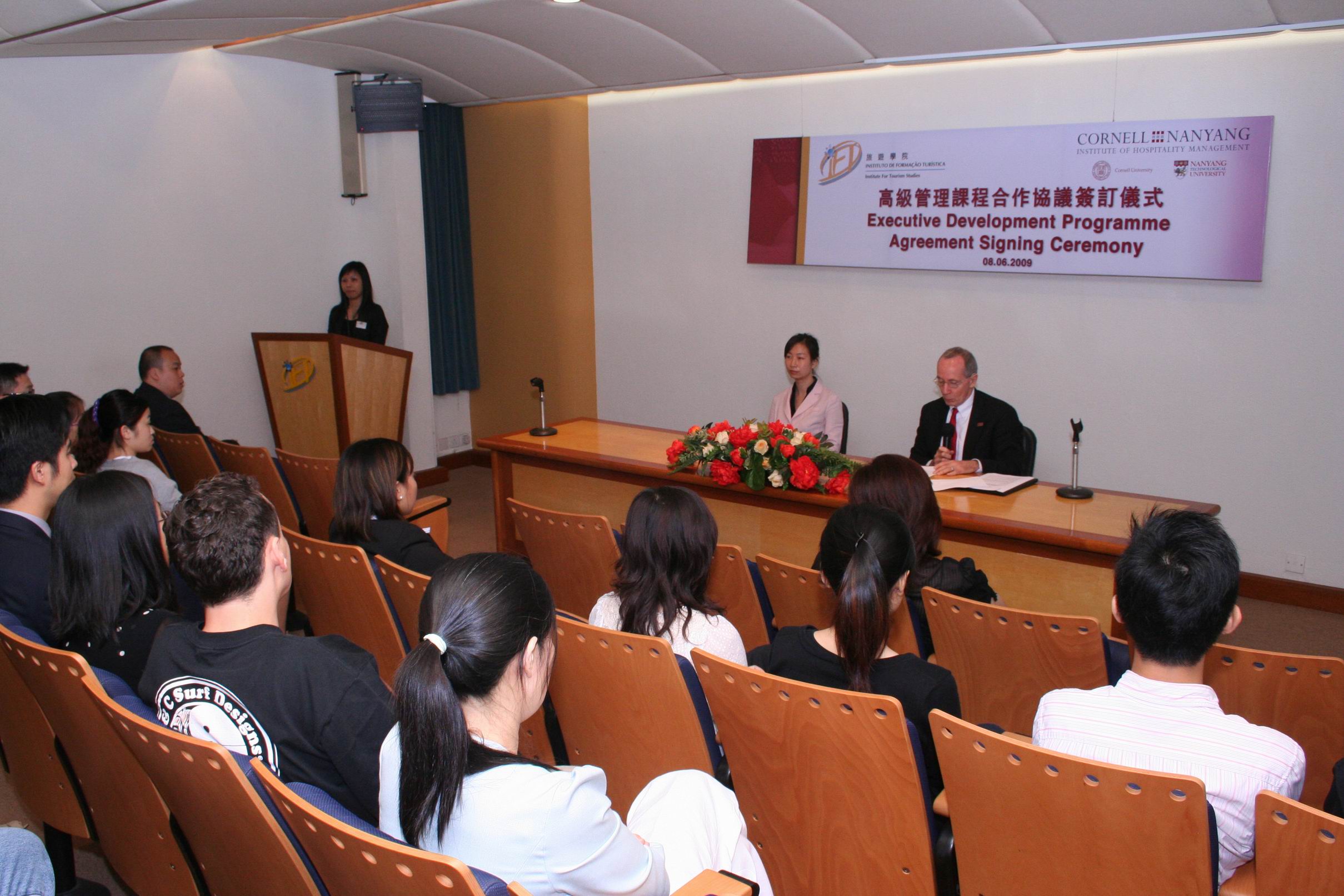 「康奈爾 – 南洋款待管理學院」由世界著名的美國康奈爾大學酒店行政學院及新加坡南洋理工大學商學院合辦,結合了世界知名酒店管理學院與亞洲精英商學院的專長,新加坡南洋理工大學商學院更被金融時報評為2009年全球最佳商學院之一,排名第二十四位。透過於南洋理工大學新加坡分校提供的款待管理碩士學位課程以及行政人員培訓計劃 - 專才培育課程和常務經理課程,主力為亞洲的酒店及旅遊業培育專業、管理及領導人才並提供高質素的款待管理課程及學術研究。有關學院的詳細資料,可瀏覽網頁www.cni.ntu.edu.sg。