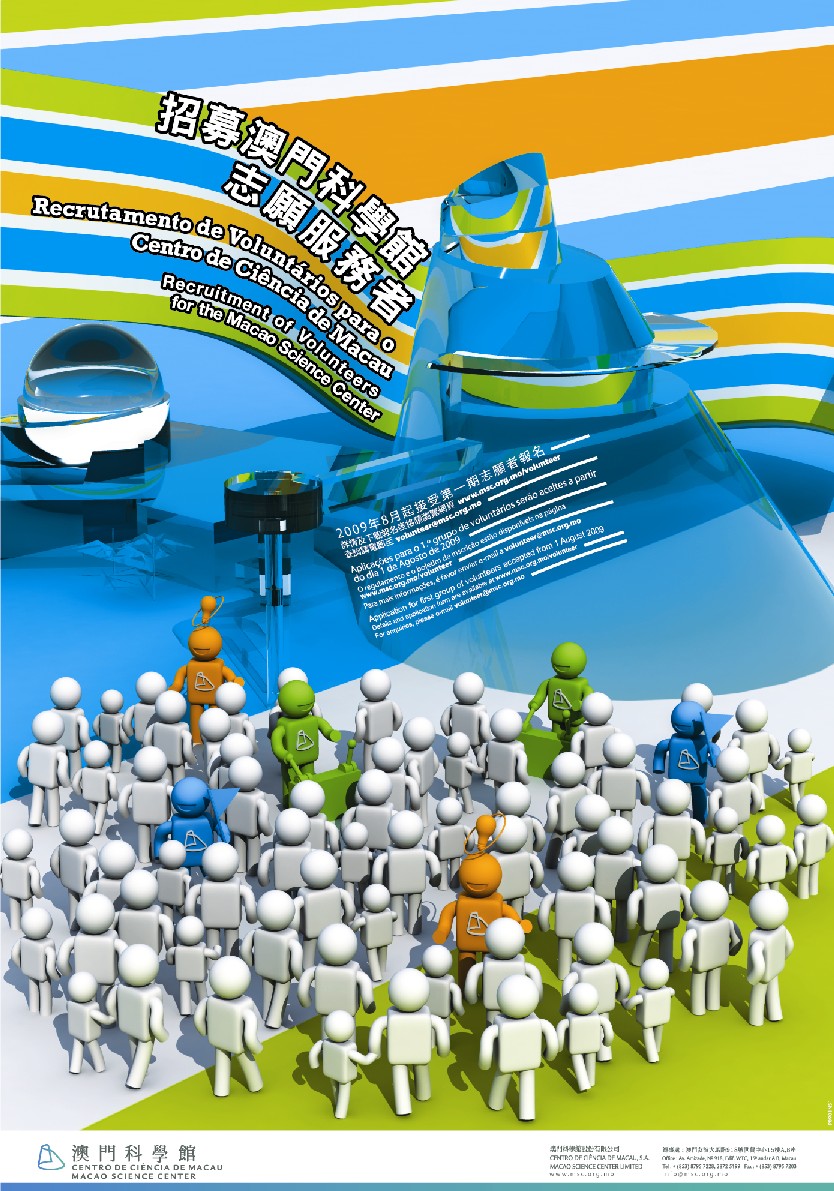 「澳門科學館志願者服務計劃」由即日起接受報名,歡迎有興趣人士參與,成為澳門科學館的首批科學普及大使。如需了解本計劃的詳情,可瀏覽澳門科學館網頁www.msc.org.mo/volunteer或電郵至volunteer@msc.org.mo查詢。