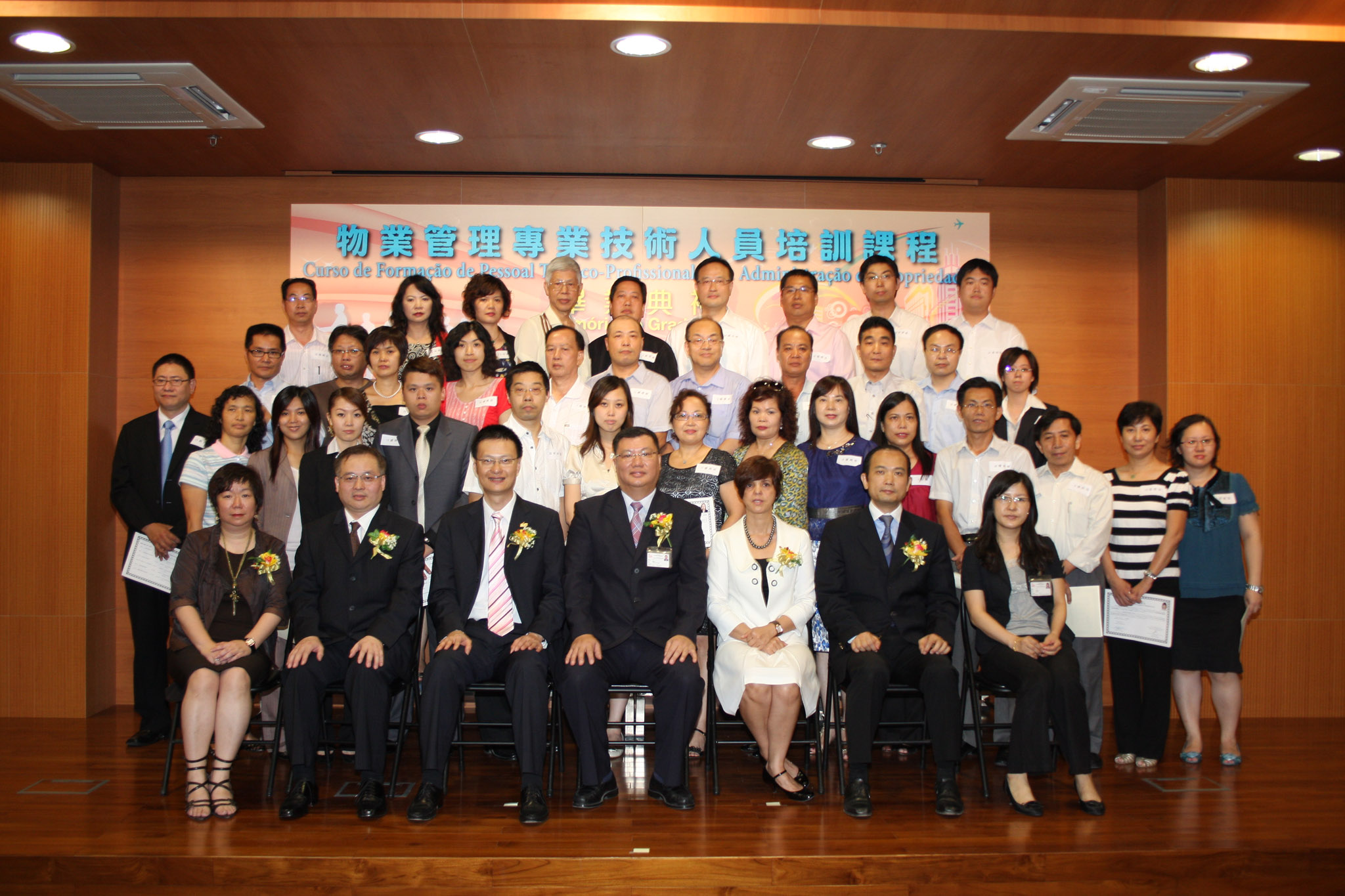 為推動本澳物業管理服務走向專業化並提高行業水平,房屋局和勞工事務局合辦第四期「物業管理專業技術人員培訓課程」,為行業人員提供進修機會,以配合將推出之「分層建築物管理實體及管理服務人員註冊制度」,有關課程於日前假房屋局大樓六樓舉行畢業典禮。