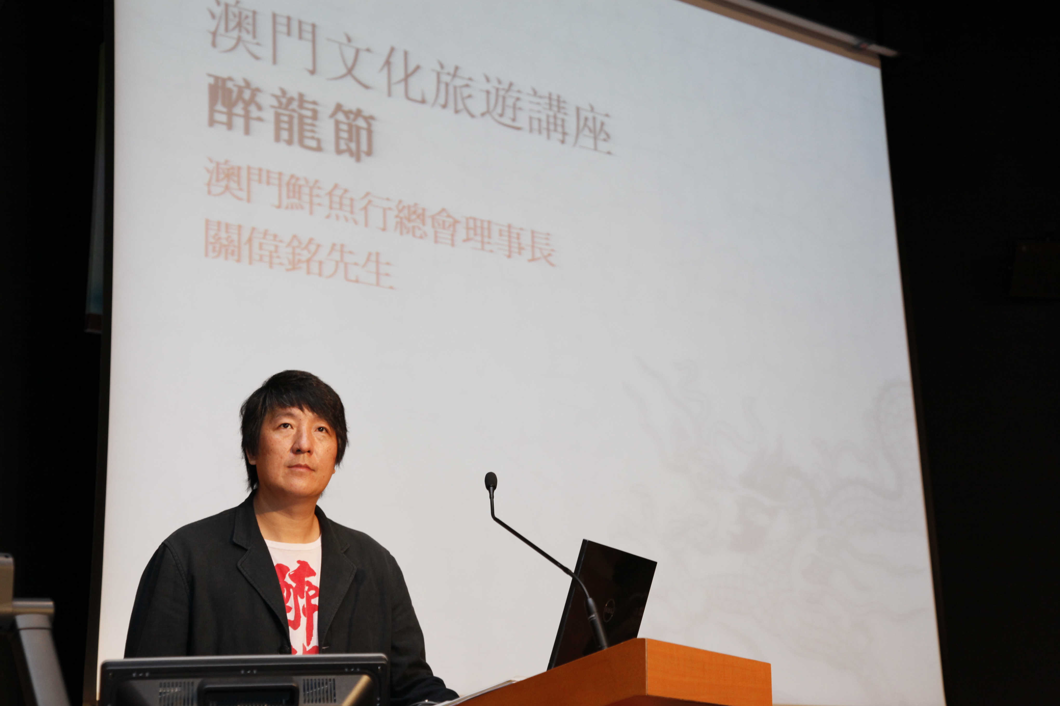 為加深澳門專業導遊和居民對澳門歷史文化和旅遊發展的認識,澳門旅遊學院專業及延續教育學校近年一直舉辦「澳門文化旅遊系列講座」,邀請宗教、文化、旅遊業界人士和專家學者;圍繞「澳門文化旅遊」的主題,開辦不同的專題講座。本院繼9月28日成功舉辦了澳門著名學者陳樹榮先生主講的「澳門老照片中的“家國情懷”」講座,又在10月21日舉辦了「醉龍節」講座,由澳門鮮魚行總會理事長關偉銘先生擔任主講嘉賓,吸引了百餘名旅遊學院師生及關注澳門非物質文化遺產的居民參加。