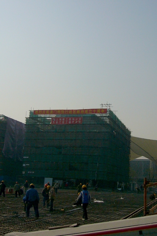 在上海世博園區「澳門館」工地及在澳門,均掛上有關之慶祝標語慶賀回歸,增加氣氛。圖片二