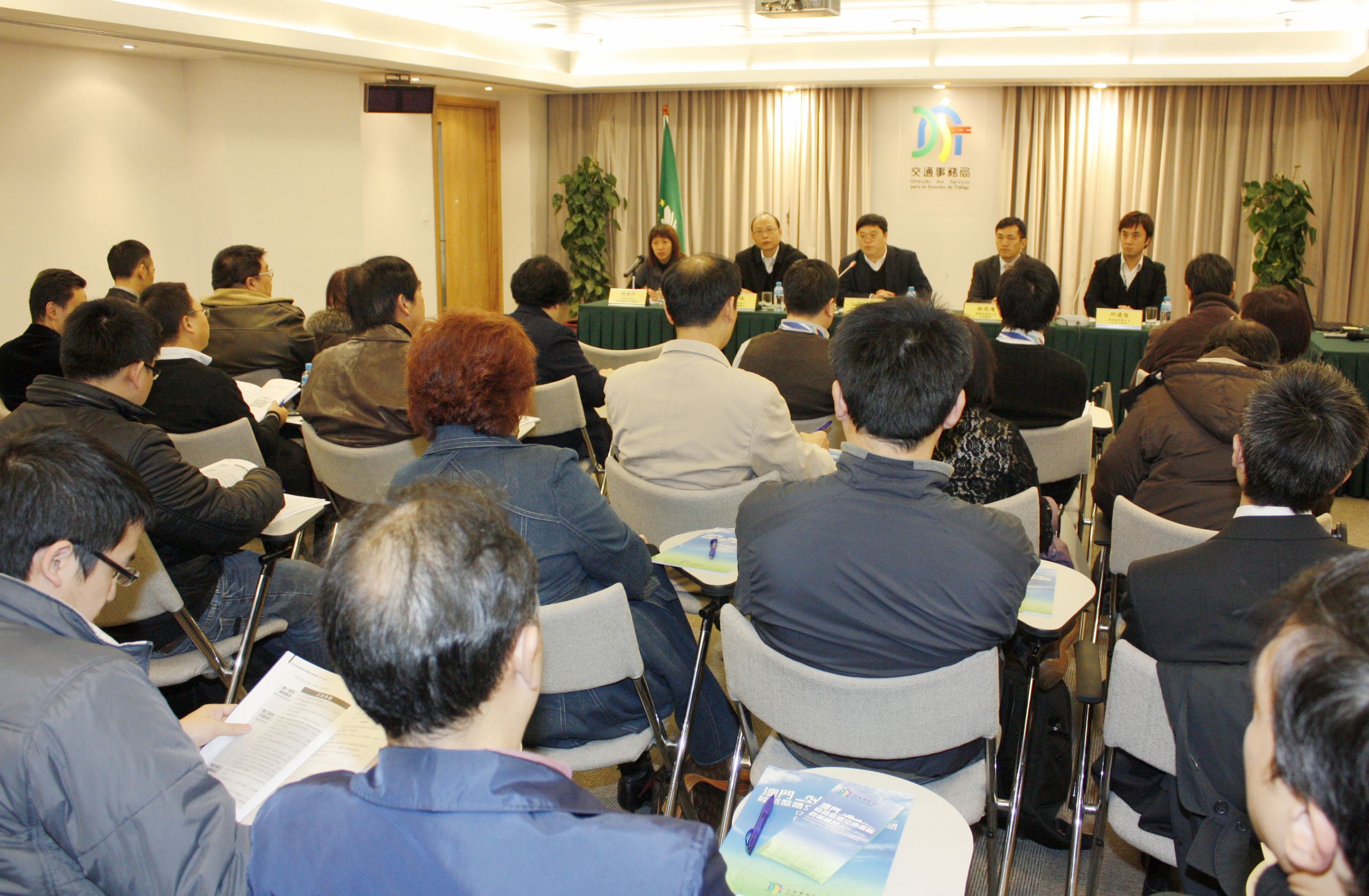 《澳門陸路整體交通運輸政策構想(2010-2020)》介紹會本月六日傍晚假交通事務局多功能廳舉行,交通事務局局長汪雲、運輸基建辦公室技術顧問林瑞海、土地工務運輸局城市規劃廳廳長劉榕、環境保護局環境規劃評估廳廳長馮詠阡及建設發展辦公室土木工程師邱遠強出席,向社諮會委員詳細闡述整個交通政策構想的內容,包括政策背景、現狀和趨勢、願景與原則、目標及措施、關注議題及整合研究。