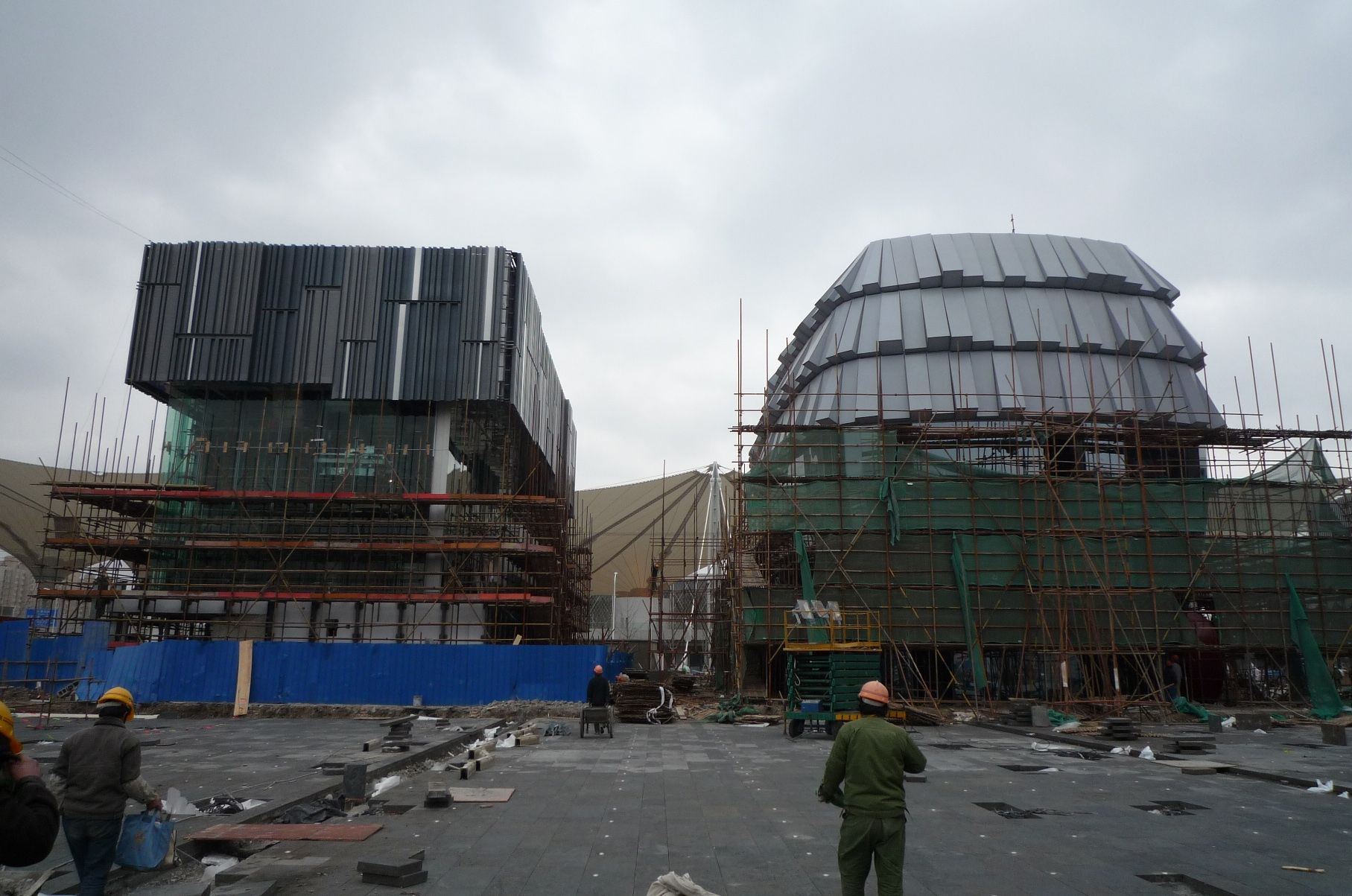 2010年世博會澳門館“玉兔宮燈”外牆建築已於日前完工,目前正在進行館內內部裝修及展示部份之施工,所有工程預計可於今年三月完成。