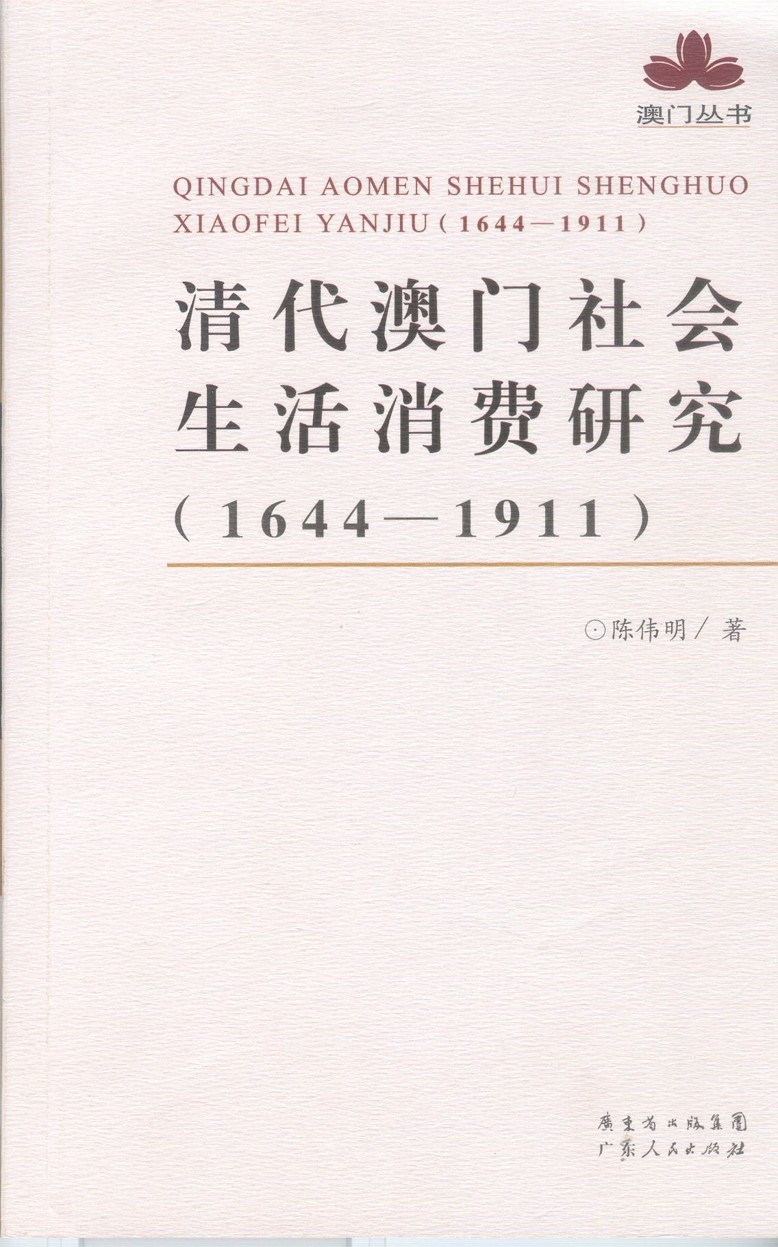 《清代澳門社會生活消費研究 (1644 ─ 1911)》一書為2007年文化局獎勵金獲得者陳偉明教授的研究成果。陳偉明教授是香港大學中文系博士,現任廣州暨南大學文學院院長、歷史系教授暨博士生導師,對澳門社會經濟史素有研究,論著頗豐。