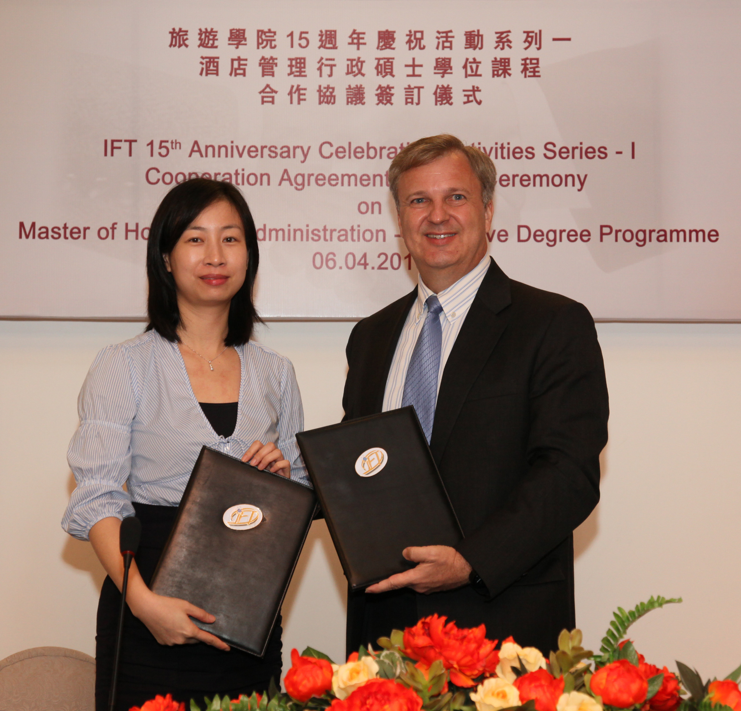 拉斯維加斯內華達大學新加坡分校校長安迪奈扎切克博士祝賀旅遊學院15週年校慶,安迪奈扎切克博士表示旅遊學院是區域旅遊教育高等院校的翹楚,雙方一直保持良好的合作關係,故特意邀請旅遊學院為第三個提供「酒店管理行政碩士學位課程」的地點,他對與學院合作充滿信心;同時相信課程可提昇業界管理層的專業水平。