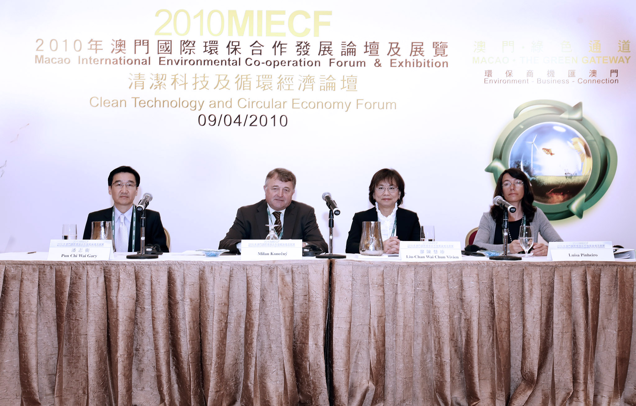 「2010年澳門國際環保合作發展論壇及展覽」在第二天舉行多個論壇,其中在上午的「清潔科技及循環經濟論壇」中,多名政商界講者和學者先後就議題發表演講,並介紹了現正運行且效果顯著的污染物處理項目,跟來自不同地方的與會者分享成果,共同為減排而努力。