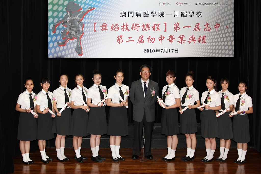 舞蹈學校舞蹈技術課程第一屆高中畢業生升學率為百分百,大部份學生將入讀北京舞蹈學院、香港演藝學院、澳門旅遊學院等著名高等院校繼續學習。畢業典禮上,梁曉鳴及張毅向畢業生及優等生頒發畢業證書及獎狀,王世紅副局長為獲得教青局蓮花獎、李白獎和蔡凌霜獎的學生頒發了獎座、獎狀和獎金。