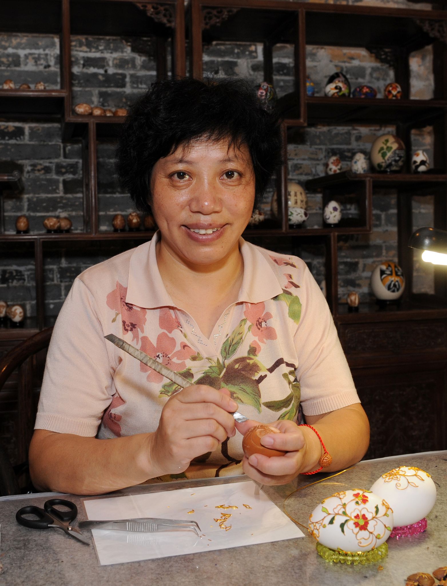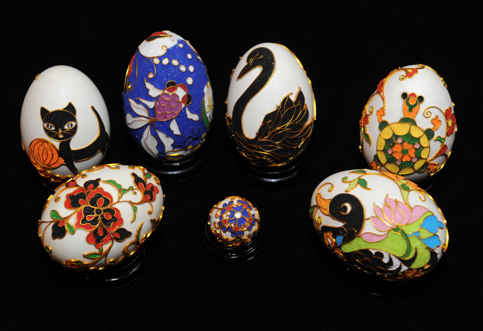 “為來澳進行展演,是次特別想出嶄新的立體彩蛋獻給澳門市民及廣大遊客,這項工藝是首次亮相,作為來澳的一份獻禮。”吳小琦介紹時指出,為追求更高的藝術創作,她試行在蛋雕、蛋上作畫等傳統的技藝上,鑽研新穎的“蛋藝”,最終成功在潔白的蛋殼上(多選用鴨蛋、鵝蛋或碩大的鴕鳥蛋),利用仿景泰藍技法,以金線和彩砂在蛋殼上進行黏合創作,成品色彩亮麗,立體生動,命名為“立體彩蛋”,這是吳小琦的最新創作,尚未在國內進行展示。吳小琦技藝傳於家學,是江蘇省淮安市著名的蛋雕工藝家,造詣深厚,作品承古創新,風格多變,曾多次獲獎及往海外進行工藝展演。
