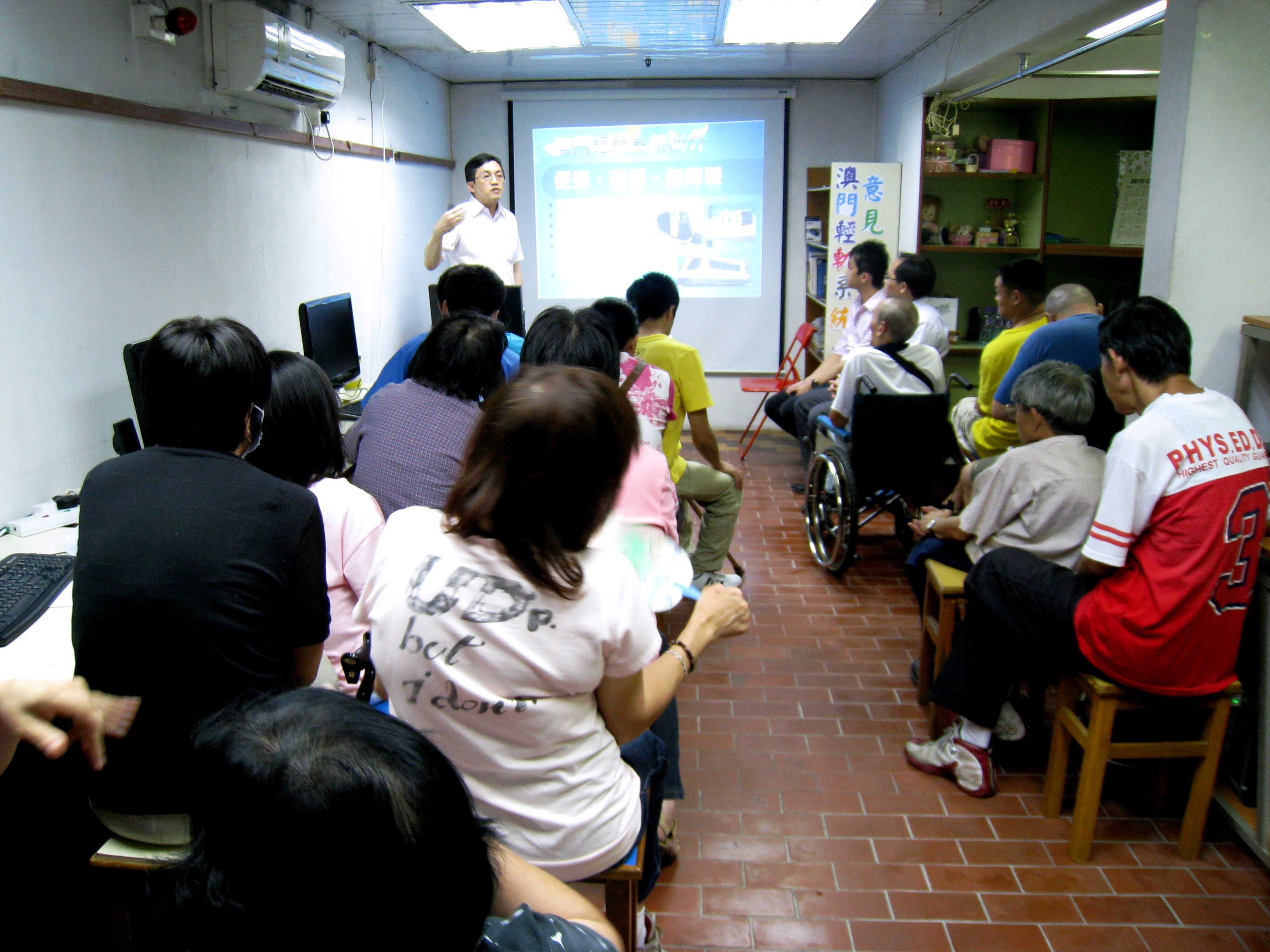 座談會假明愛傷殘人士社會服務中心暨庇護工場舉行,運建辦技術顧問林瑞海等一行五人向與會人士講解輕軌系統無障礙設施構想,並介紹輕軌一期的籌建和設計情況,以及聽取在場人士對使用輕軌系統不同的訴求。有復康人士期望未來車站內能配備電動輪椅充電設施,令他們單獨出行時不受限制;也有出席者建議復康人士洗手間內應鋪設防滑磚及防滑膠粒;另有與會人士關注站點能否到達醫院、車票定價及會否向復康人士提供票價優惠等。