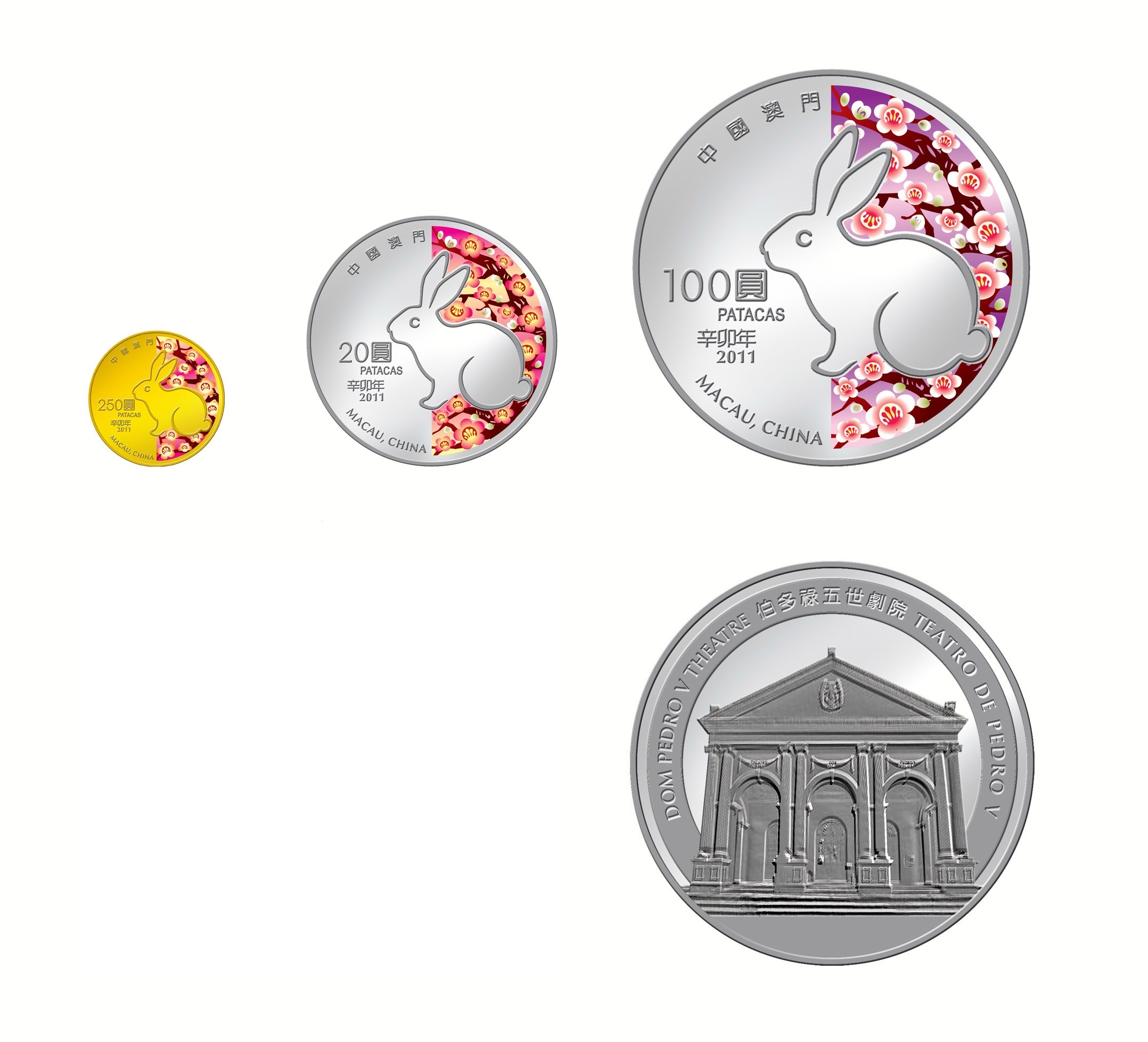 澳門金融管理局於2008年推出全新系列之農曆年紀念幣,兔年紀念幣為系列的第四套紀念幣。三款紀念幣之設計圖案相同,但色調不一及背面鑄有崗頂劇院的圖案。
