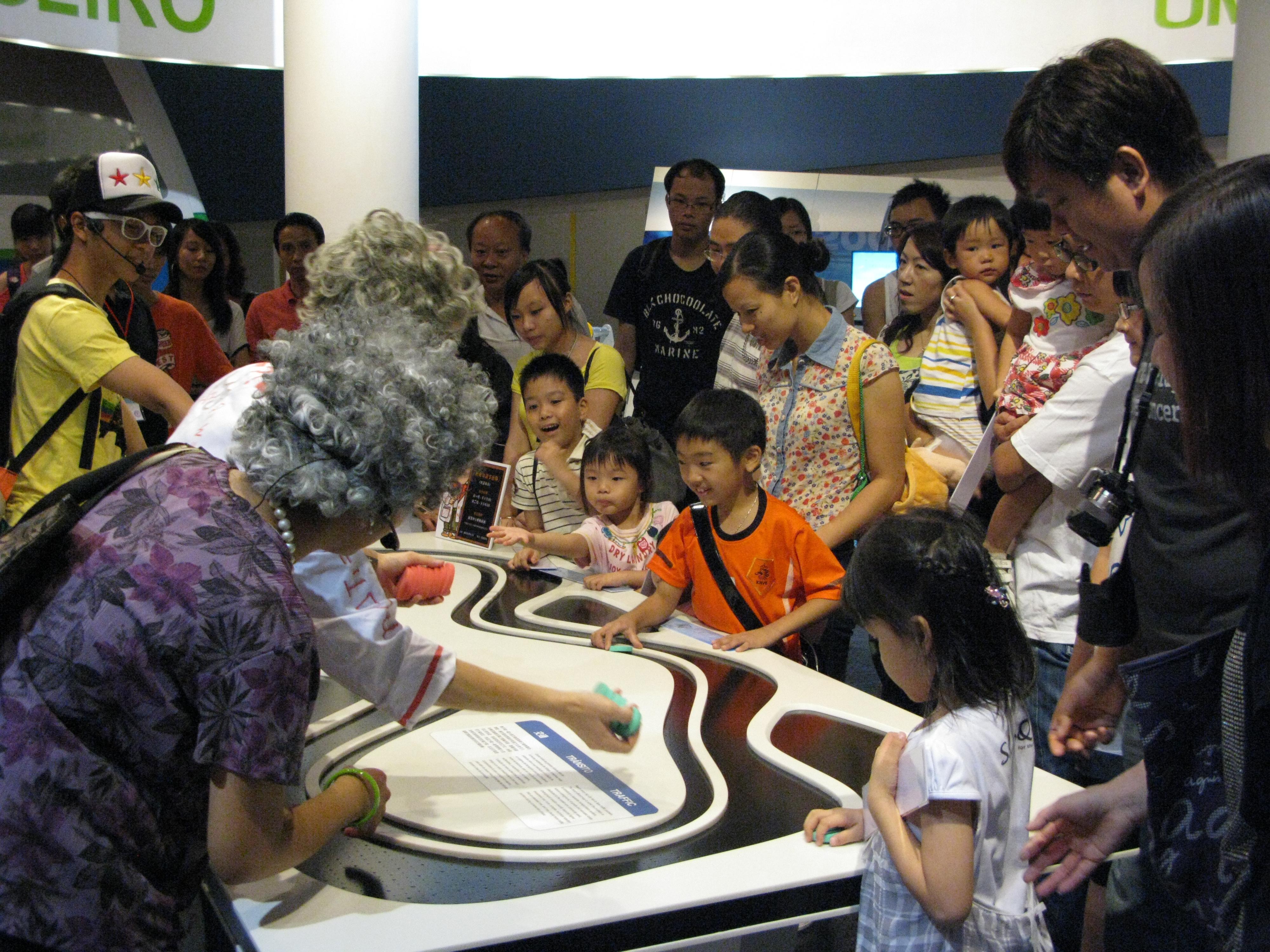 「輕軌知識多面睇」於今年6月至9月在科學館輕軌展廳演出,故事中三名主人翁分別是形象鮮明的輕軌專家「盞鬼博士」、「烏龍婆婆」及「型爆潮男」,透過他們既盞鬼,又生動的演出,觀眾可以初步認識膠輪輕軌系統和澳門輕軌項目,演員還會帶領觀眾了解輕軌展廳內每件展品的功能和特性,藉著輕鬆、簡明的互動介紹以及零距離接觸,使觀眾更容易掌握輕軌系統的基本概念。在三個多月的演出期內,累計欣賞人數已經超過五百七十人次,反應熱烈。