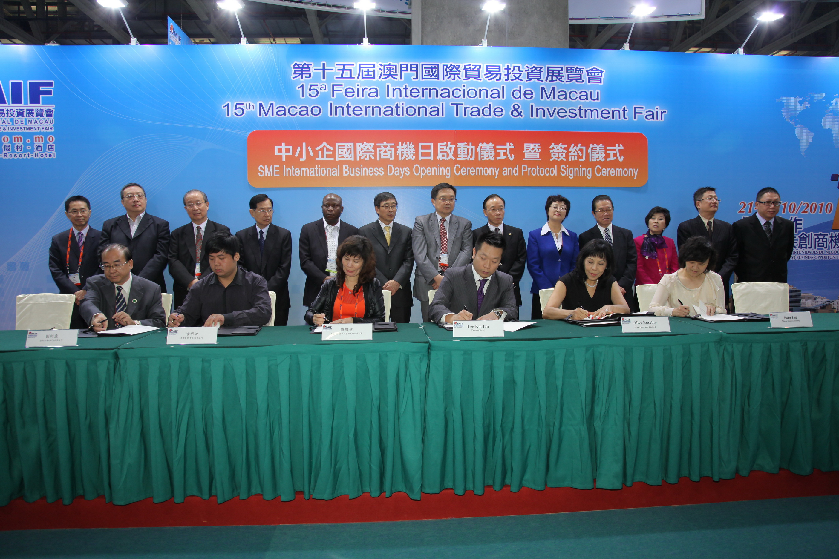 當日上午舉辦了 “中小企國際商機日啟動儀式暨簽約儀式”,商機日主要圍繞特許經營、電子商務等新興模式內容,透過專櫃諮詢服務、目錄展覽、專題研討、業務推介等多種形式和活動,協助中小企業強化綜合競爭力,實現升級轉型。澳門貿易投資促進局主席張祖榮致辭表示,本屆展會中小企業展區的規模比上屆擴大一倍,以協助中小企透過展銷產品,增加貿易機會和業務數量。此外,大會還為中小企安排一系列現場洽談推介和配對活動。同場舉行簽約儀式,來自澳門、香港、內地、德國及印尼等地的企業和經貿機構,簽署了23項涵蓋多個領域的合作協議。