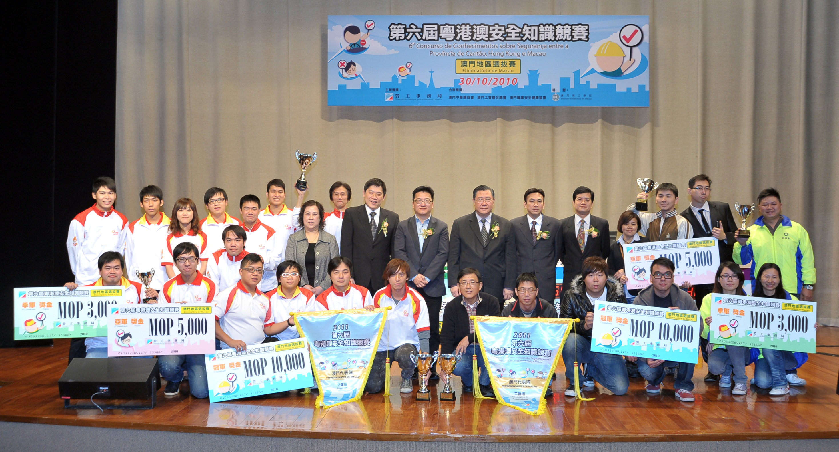 工會組和企業組比賽的冠、亞、季軍隊伍,分別獲頒發澳門幣壹萬元、伍仟元及叁仟元的獎金,以及獲頒發獎盃。兩組優勝隊伍將代表澳門參加於2011年在本澳舉行的「第六屆粵港澳安全知識競賽」,與廣東省及香港特別行政區的代表隊伍進行職安健知識的競賽和交流。
