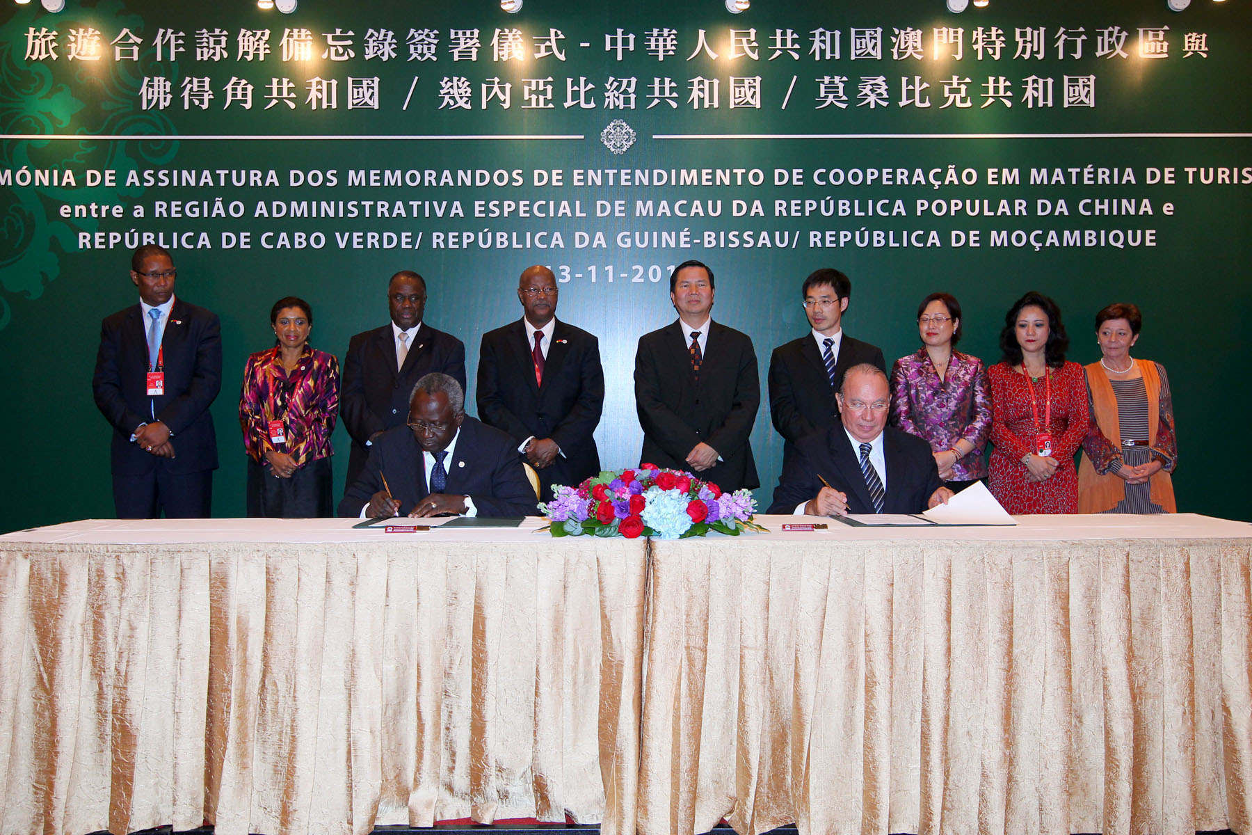 澳門特區政府旅遊局局長安棟樑代表特區政府,分別與佛得角駐華大使儒里奧莫賴斯、幾內亞比紹駐華大使卡馬拉及莫桑比克駐華大使安東尼奧伊納西奧儒尼奧爾,簽署旅遊合作諒解備忘錄,三份備忘錄內容相同。