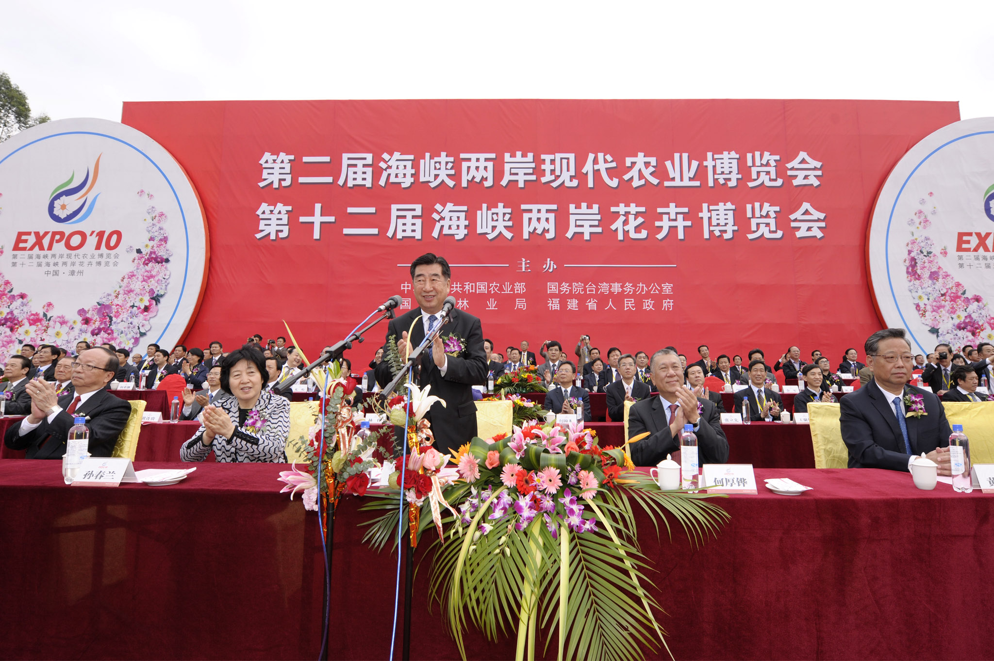 全國政協副主席、前行政長官何厚鏵昨(18)日應邀出席了在福建省漳州市舉行的「第二屆海峽兩岸現代農業博覽會暨第十二屆海峽兩岸花卉博覽會」開幕式,並巡視各展館。