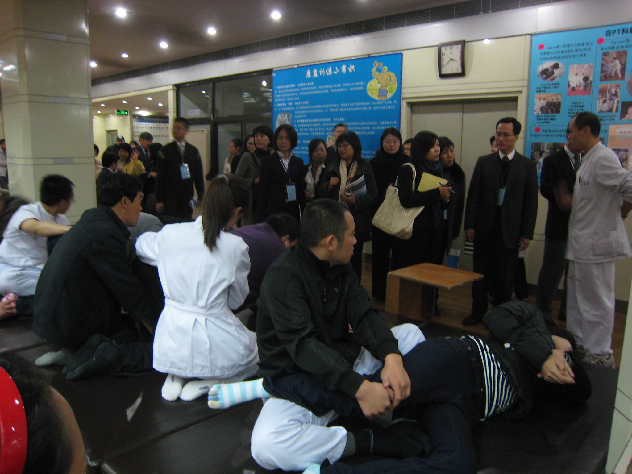 交流團參觀了中國康復研究中心屬下博愛醫院,醫院設有臨床科室和康復業務科室,包括言語聽力康復治療中心、兒童腦癱科、脊柱脊髓捐傷康復科等。另外,醫院開設中西部地區康復人才培訓項目,利用遠程教學技術,向西安、重慶、南寧等地學生提供康復服務教育課程。