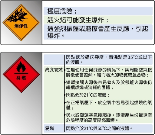 ﹝三﹞ 安全措施:選擇較安全的代替品,採用工程控制措施,保持工作場地具良好通風,盡量在有抽風系統的條件下工作。使用爆炸性化學品或易燃化學品時,工作場所不能有明火或任何足以點火之熱力來源,了解及依照安全施工程序施工,並熟悉緊急應變程序;